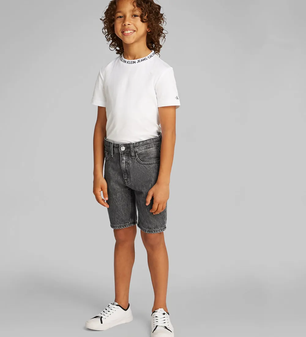 Stilfulde Calvin Klein shorts i en sort denimfarve. Shortsene åbnes på fronten med en knap og lynlås. Calvin Klein shortsene har en klassisk pasform med praktiske lommer og en behagelig elastik i taljen.