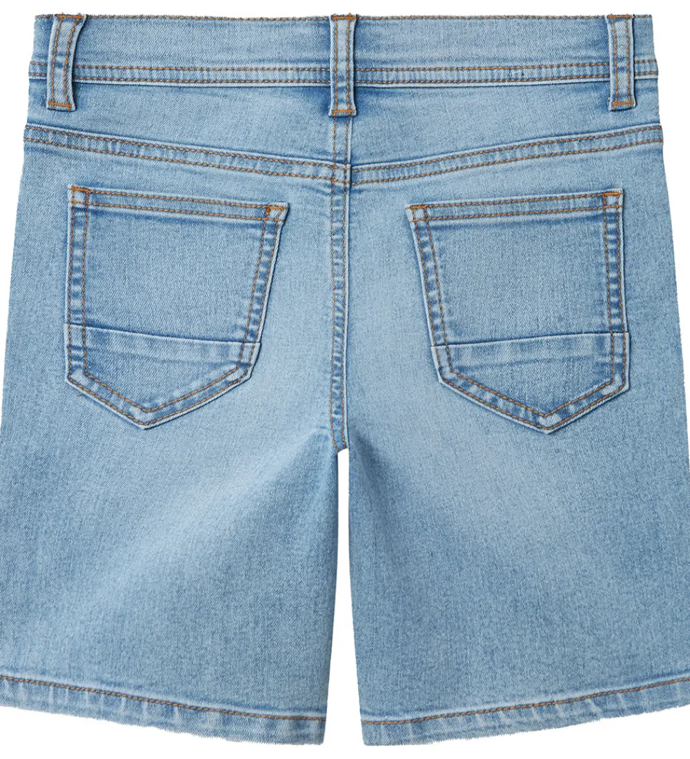 Stilfulde Name It shorts i lyseblå denim med en indvendigt, justerbar elastikkant i livet. Designet har klassiske lommer og åbnes med en hægte og lynlås foran. Name It skaber komfort og stil i en enkel pakke, ideel til hverdagens brug.