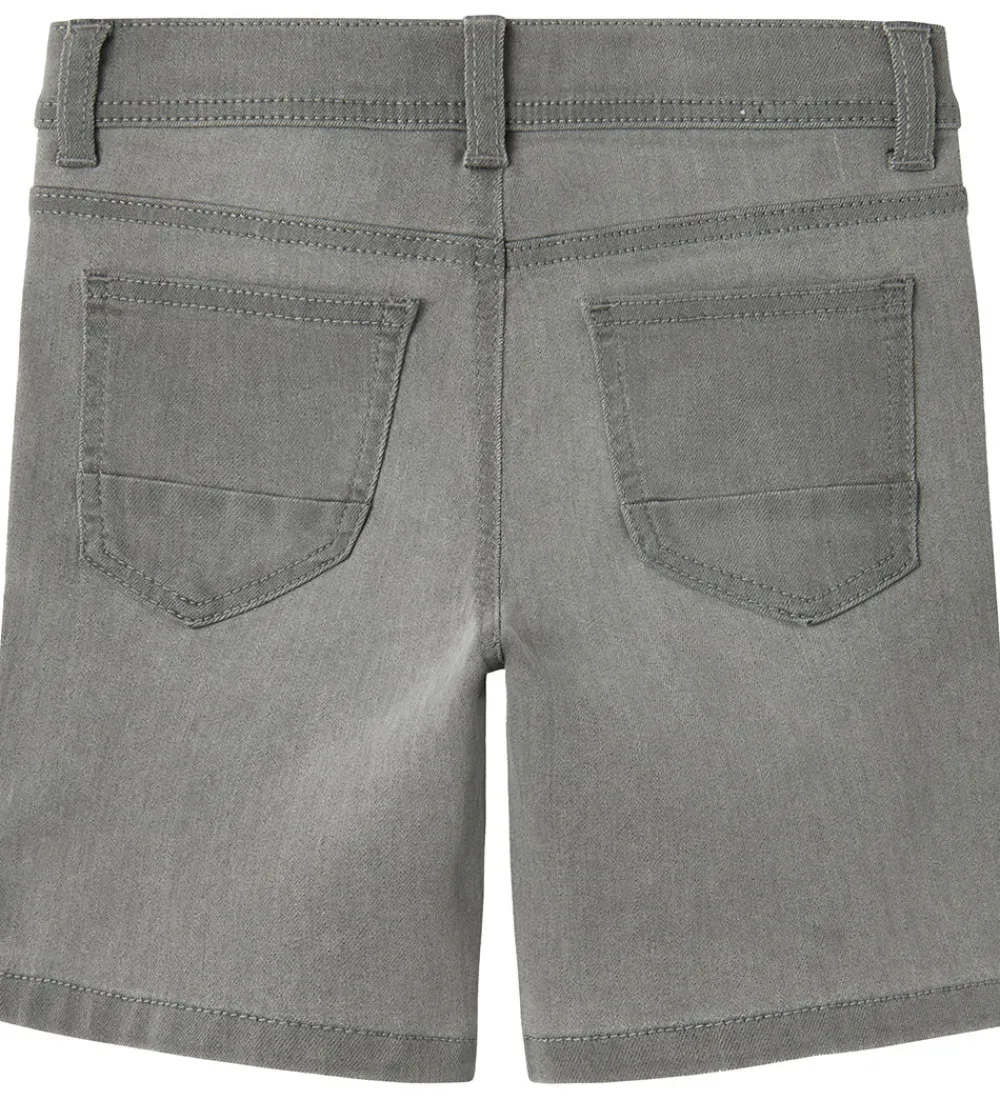 Flotte Name It shorts i en stilren, lysegrå denim med en indvendigt, justerbar elastikkant. Name It shortsene har et klassisk design med lommer foran og bagpå samt en praktisk lynlås- og hægtelukning.