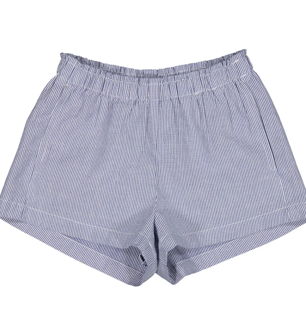 Fine MarMar shorts i en klassisk hvid med smalle lodrette blå striber. MarMar shortsene har en behagelig elastisk talje, der sikrer god pasform. Perfekt balance mellem stil og komfort.