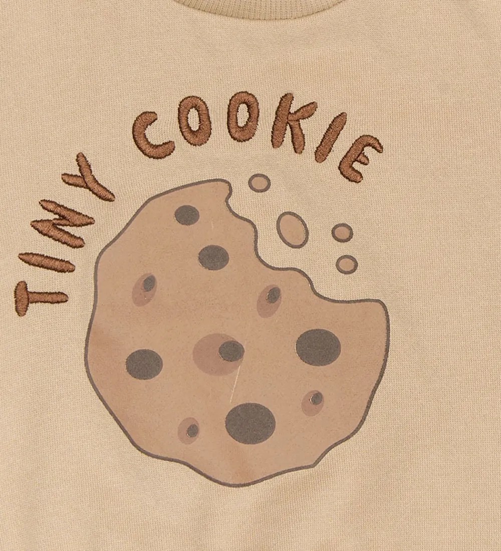Charmerende The New siblings sweatshirt i en varm, mørkebeige farve med et sjovt print af en småkage.