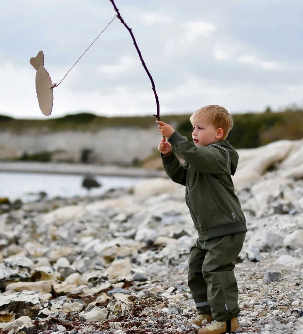 Praktisk Mikk-Line skaljakke i en dyb grøn farve. Mikk-Line skaljakken har en aftagelig hætte, som sidder fast med trykknapper, og den har brede ribkanter. Skaljakken lukkes med en lynlås med hagebeskytter og indvendig vindstolpe, og i siderne er der praktiske lommer. Øverst på venstre ærme sidder der en klaplomme, som lukkes med velcro.