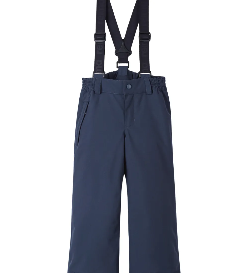 Reima skibukserne har en god elastik i livet, og de kan åbnes fortil med en trykknap og en lynlås. Der er aftagelige elastikseler, som kan justeres i længden.