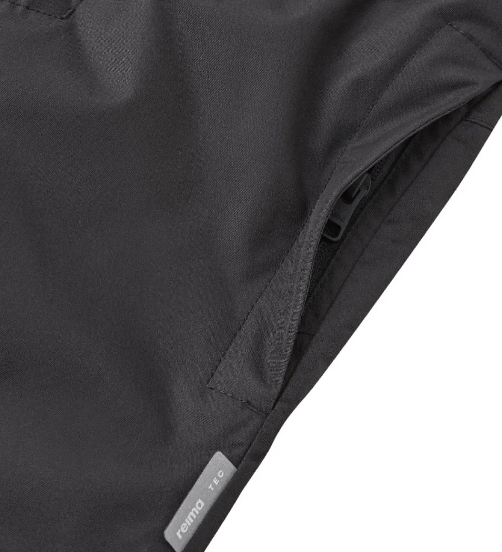 Reima skibukserne har justerbare, aftagelige seler, som fæstnes med velcro, og de samles på ryggen, så de sidder godt fast på skuldrene. I livet er der en bred elastik, og skibukserne åbnes fortil med en tryknap og en lynlås. I siderne er der praktiske lommer, som lukkes med en skjult lynlås.