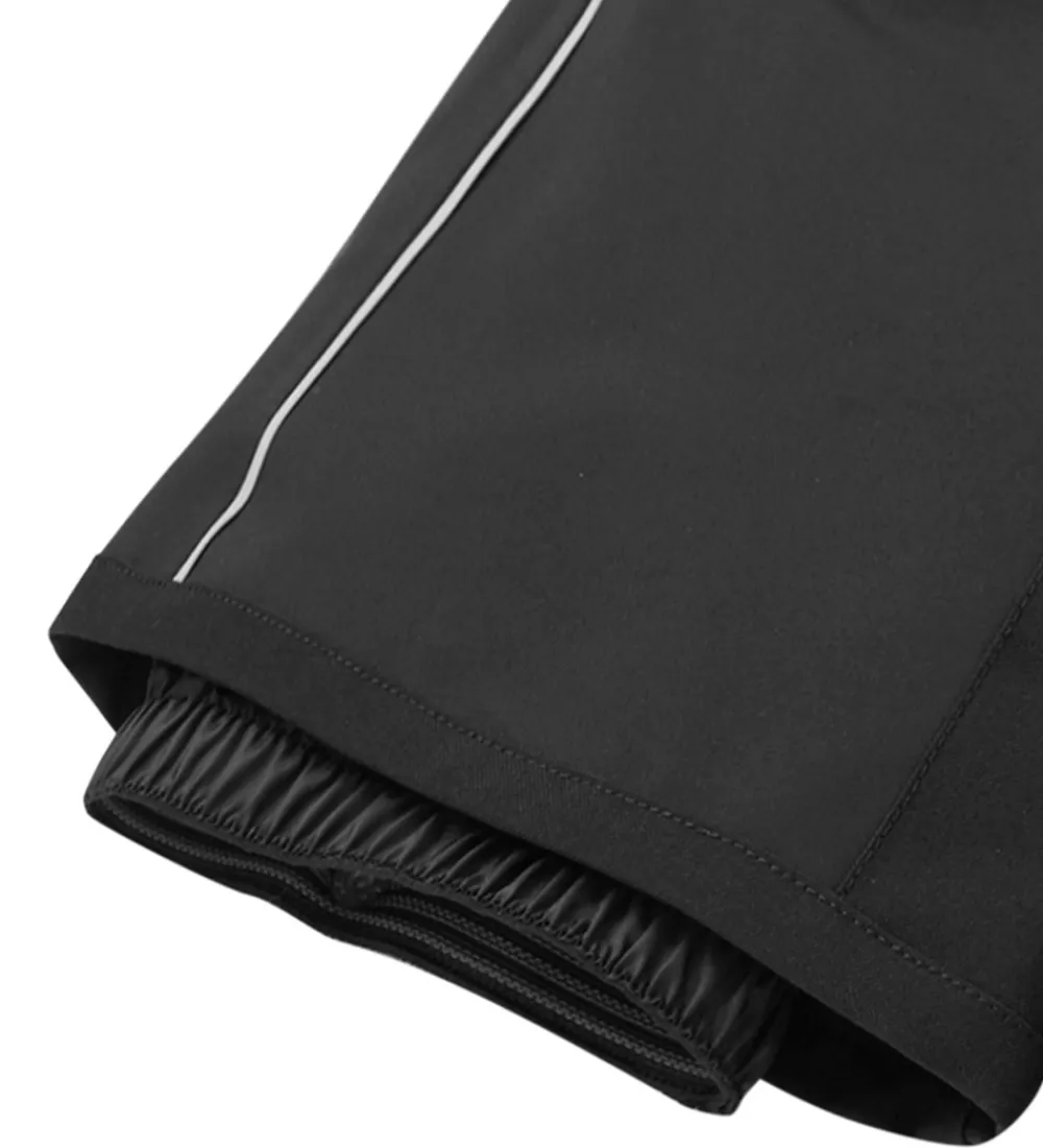 Reima skibukserne har forstærkninger på buksebenene, og der er praktiske snefang med en smal elastikkant med gummibelægning på indersiden. Det yderste lag af buksebenet kan fæstnes til snefanget med en trykknap, så det ikke glider op. Nederst langs siderne af buksebenene er der smalle refleksstriber.