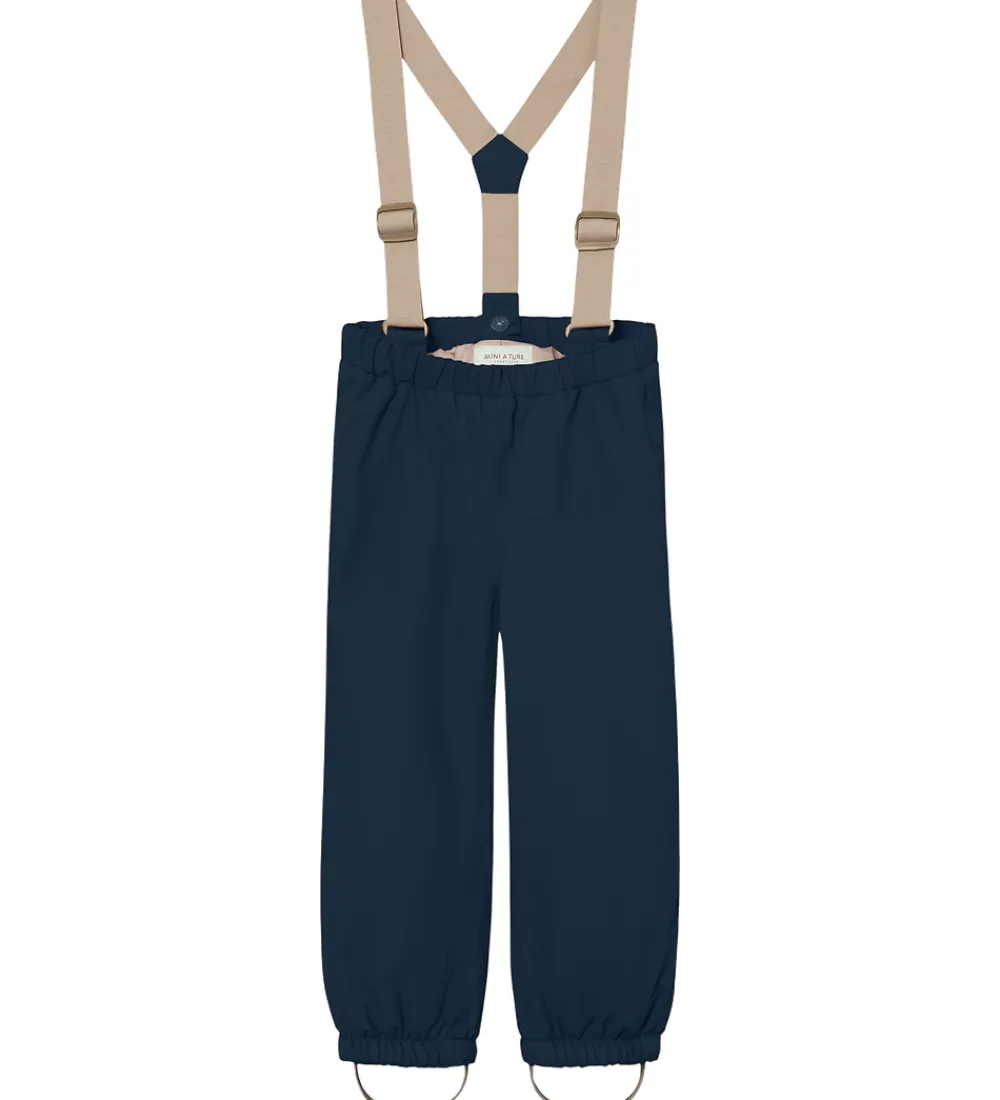 Fine Mini A Ture skibukser i navyblå. Skibukserne er med beige for.