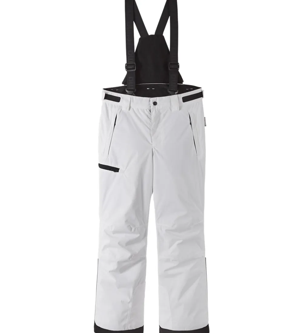 Reima skibukserne har justerbare seler, som lukkes med klikspænder fortil, og er aftagelige med en lynlås i ryggen. I livet er der velcrojusteringer og bæltestropper, og skibukserne åbnes fortil med en tryknap og en lynlås. I siderne er der praktiske lommer, som lukkes med en skjult lynlås, og der er også en ekstra lynlåslomme på højre lår.