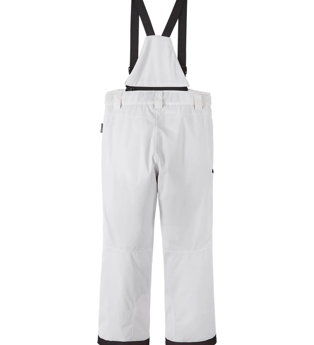Reima skibukserne har forstærkninger på buksebenene, og der er praktiske snefang med en smal elastikkant med gummibelægning på indersiden. Det yderste lag af buksebenet kan fæstnes til snefanget med en trykknap, så det ikke glider op, og selve snefanget kan også løsnes op ved hjælp af en trykknap.