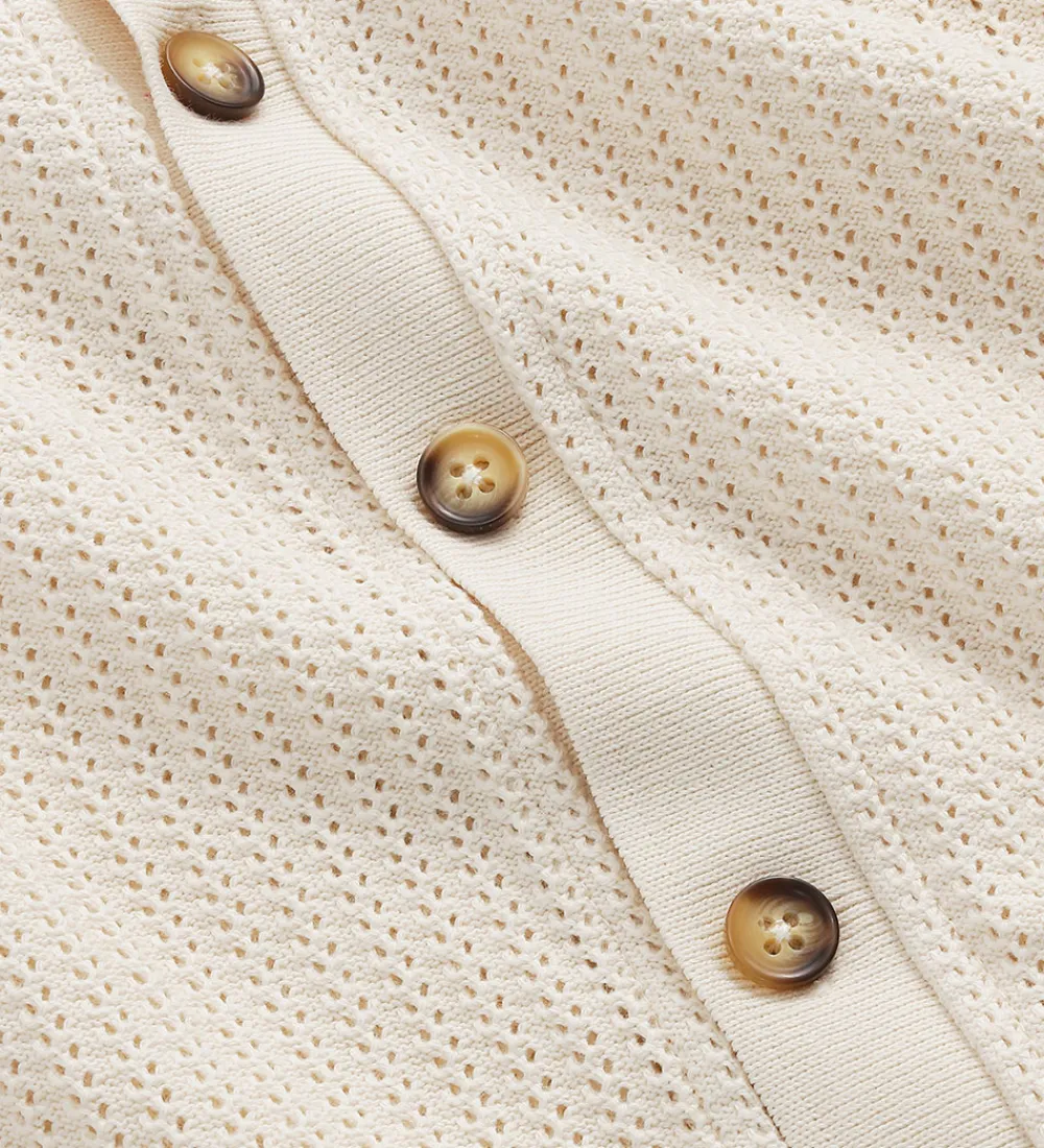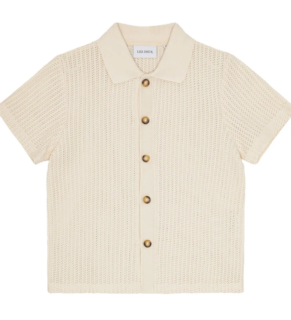 Elegant Les Deux skjorte i strikket kvalitet med korte ærmer i råhvid nuance og stilfulde knapper på fronten. Les Deux skjorten er velegnet til dem, der sætter pris på et enkelt og pænt design.