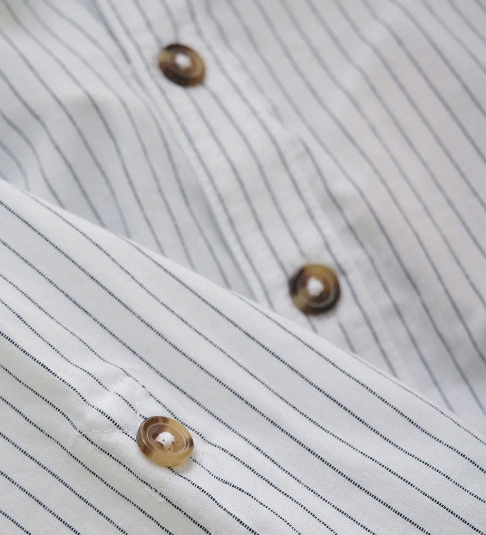 Elegant Minymo skjorte med lange ærmer i hvid med fine striber. Skjorten har knapper fortil og vil give et stilfuldt touch til ethvert outfit. Minymo sikrer komfort hele dagen.