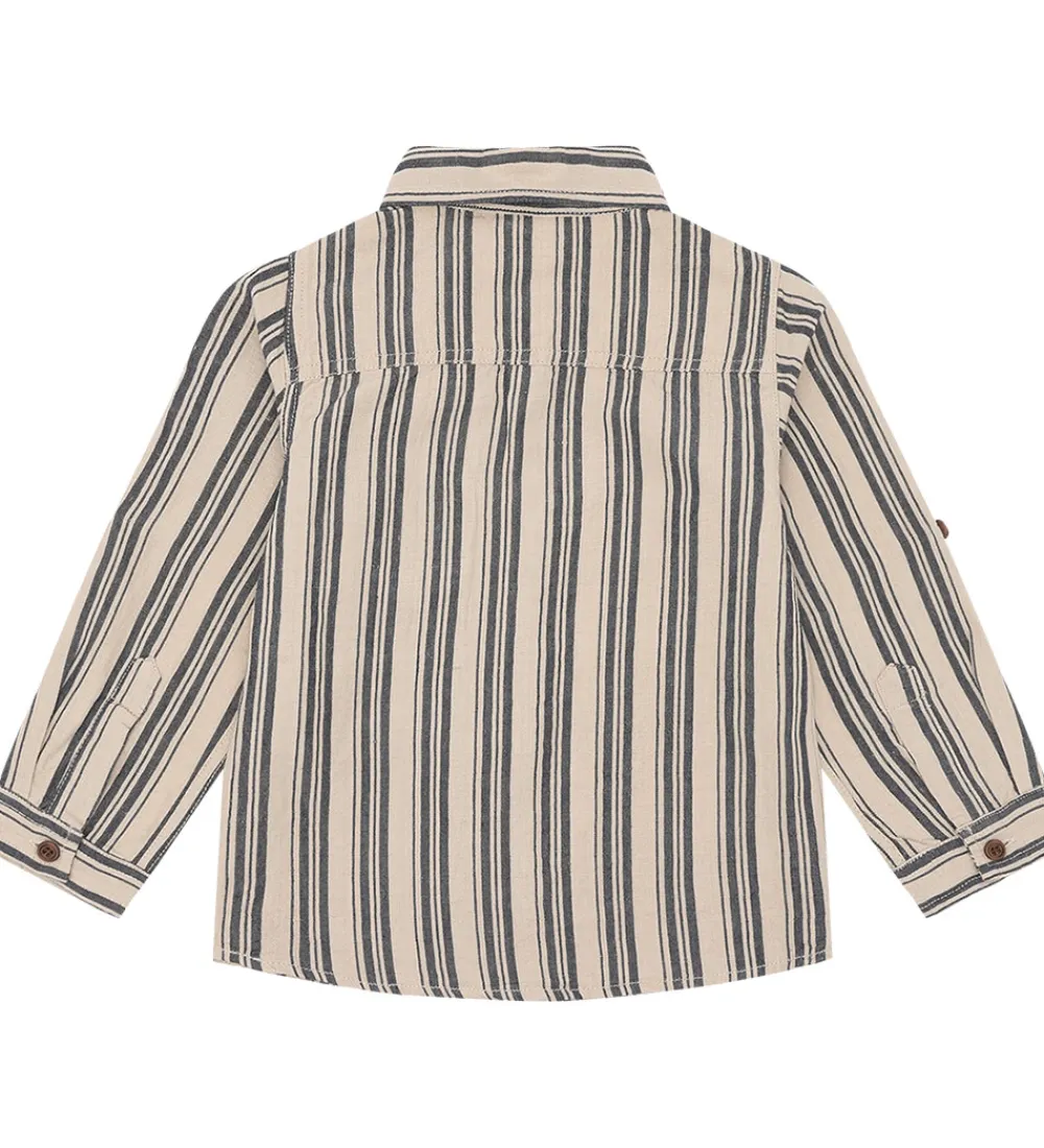 Hust and Claire skjorten har lange ærmer med slids og knaplukning samt en klassisk ombukket krave. Skjorten har en gennemgående knaplukning fortil med knapper i trælook samt en åben brystlomme i venstre side. Skjorten har en knap midt på ærmerne og indvendig strop, så ærmerne kan foldes op, og den er fremstillet i en lækker fastvævet kvalitet.