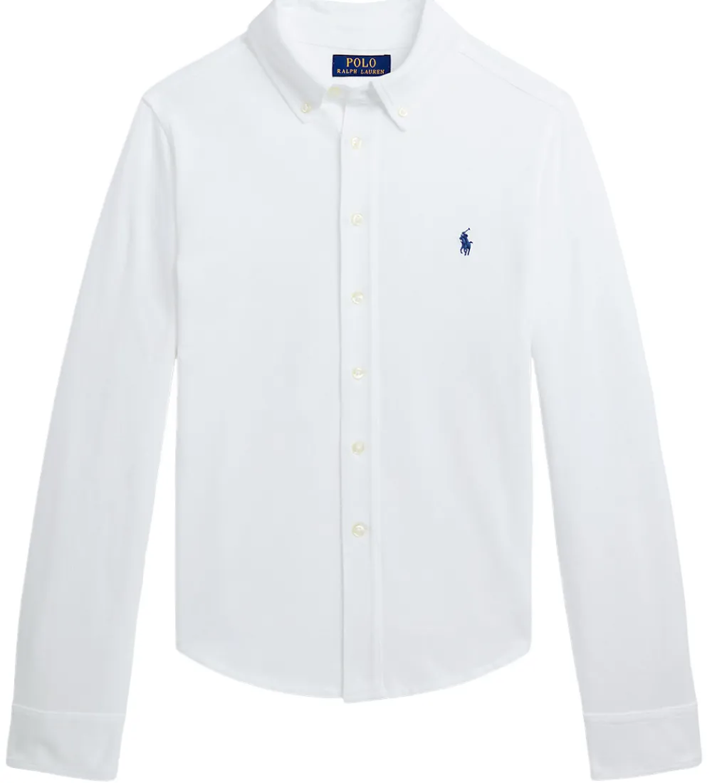 Flot Polo Ralph Lauren skjorte i hvid piqué, og fortil i venstre side er der broderet et lille, navy logo.