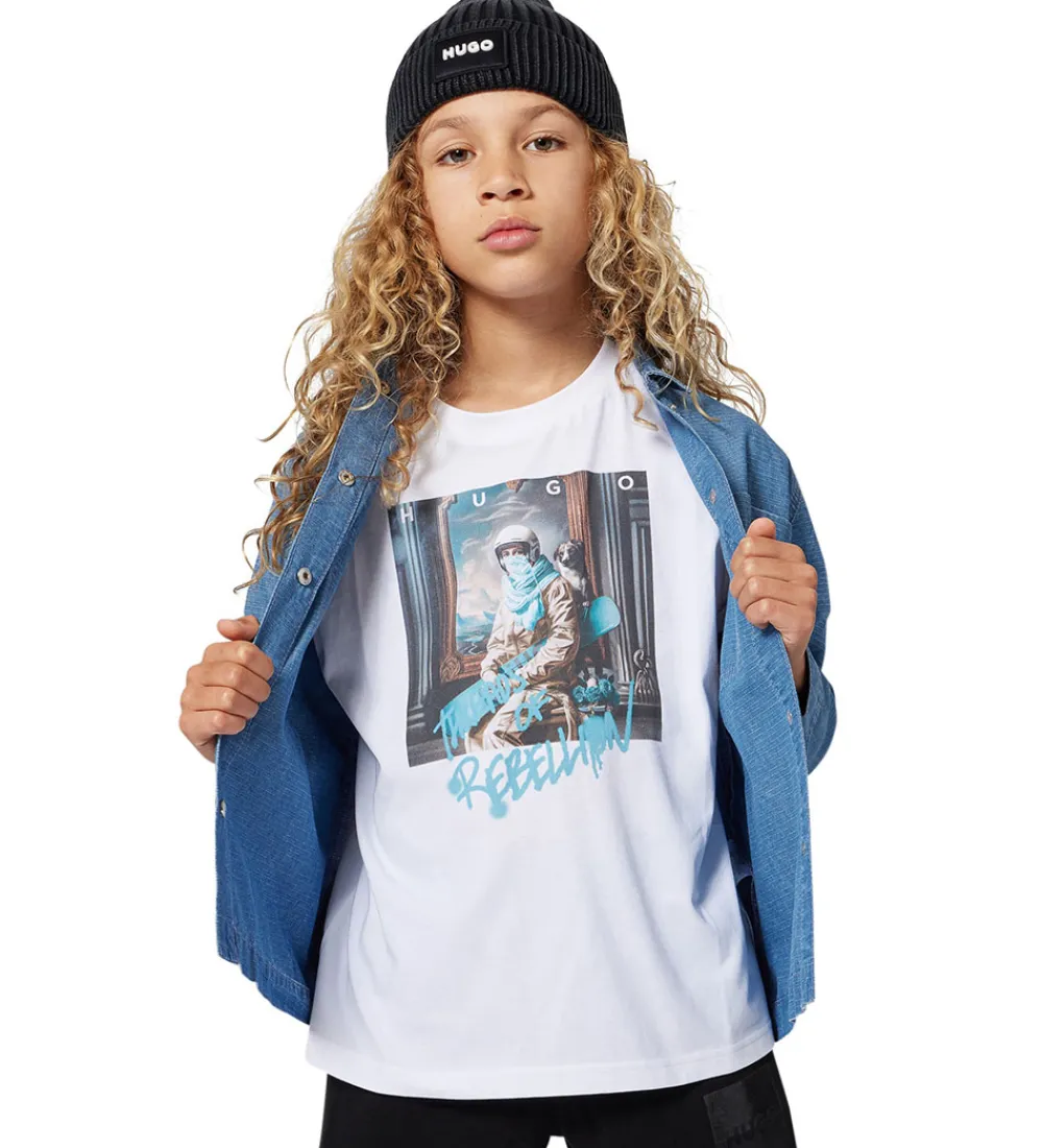 Stilfuld HUGO skjorte med lange ærmer i en flot denimblå nuance og et diskret ternet mønster. Skjorten har en klassisk krave og to brystlommer. Skjorten lukkes med sorte trykknapper, hvilket giver skjorten et rent og moderne udseende. Pasformen synes afslappet med en lige silhuet.