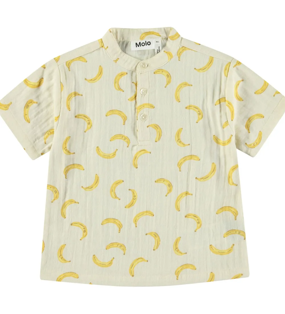 Skøn Molo skjorte i lys beige med et skønt allover bananprint.