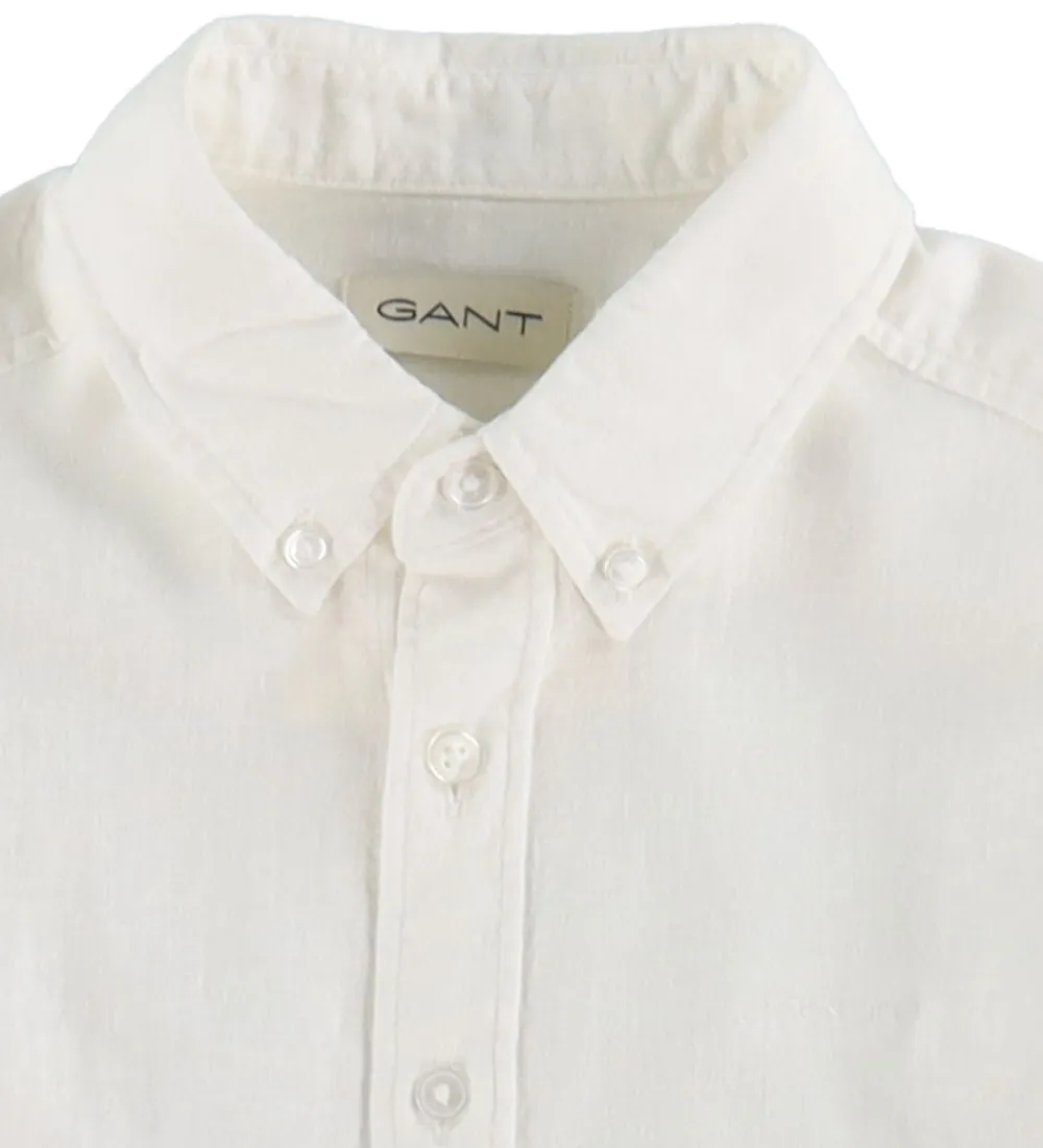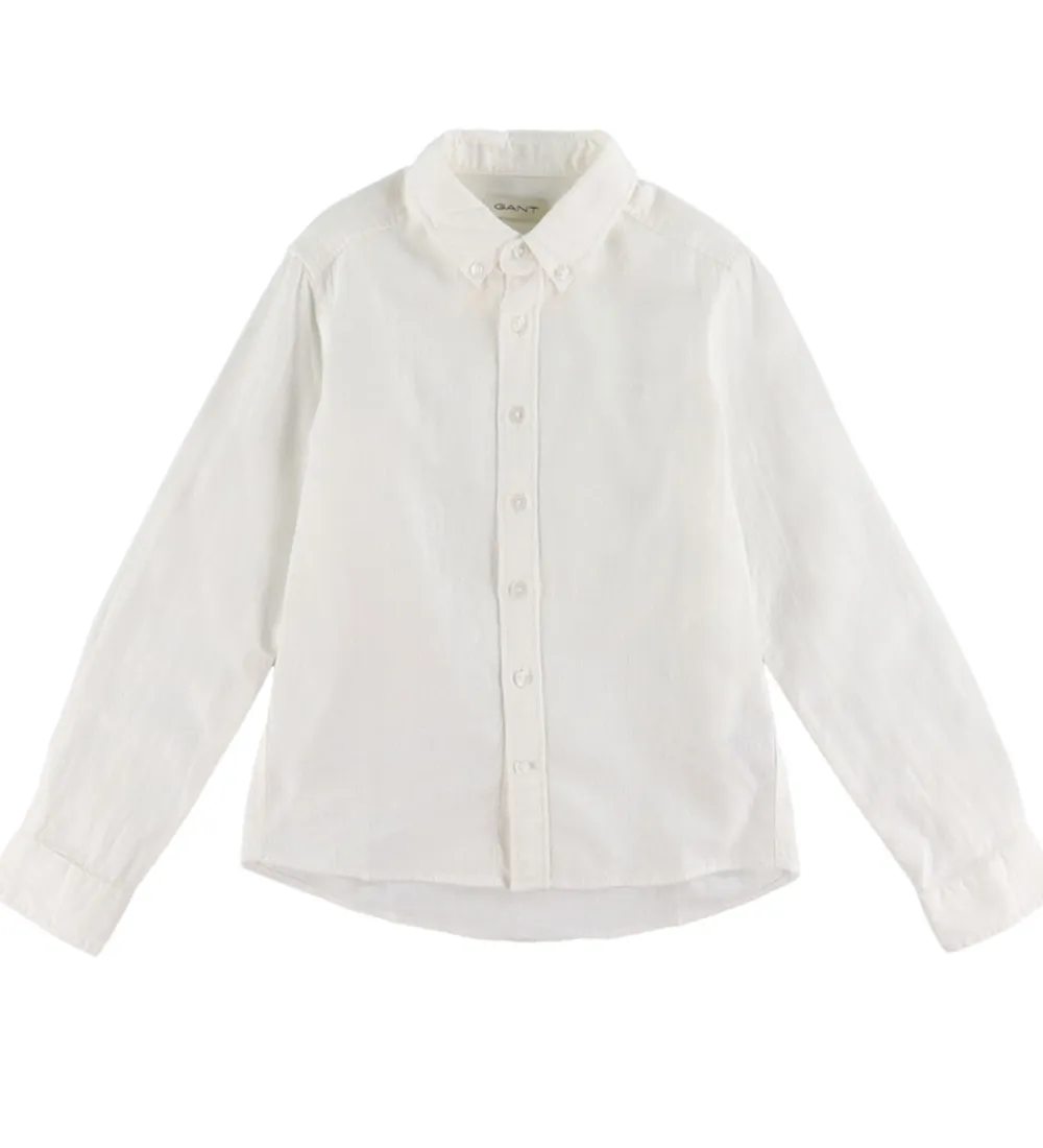 Elegant GANT skjorte i hvid med lange ærmer. Skjorten har en klassisk krave og knaplukning foran, som giver et stilrent udtryk. GANT skjorten er ideel til enhver garderobe.