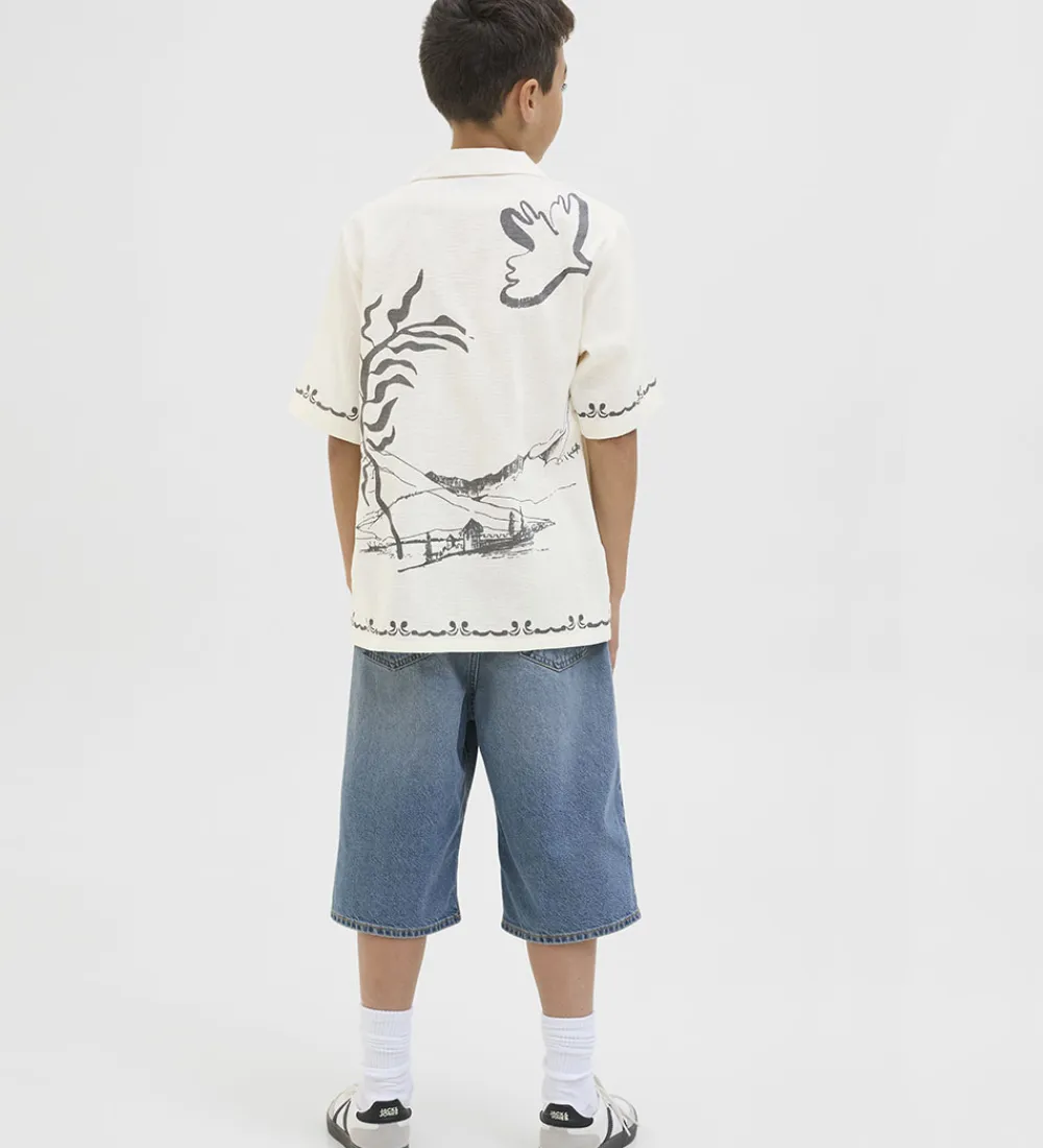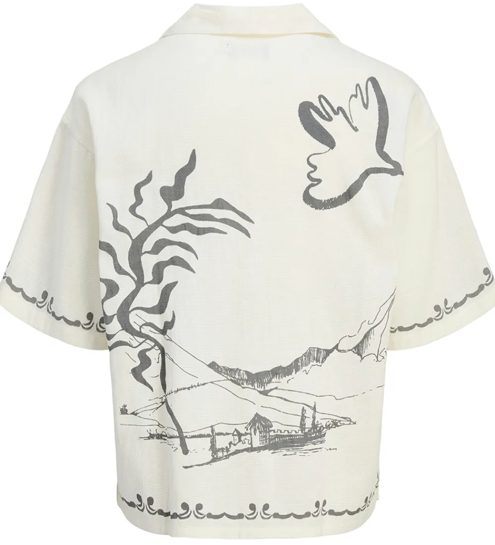 Elegant Jack & Jones skjorte med korte ærmer i hvid med flot print på fronten, på ærmerne og på ryggen. Jack & Jones skjorten har en klassisk krave, som giver et stilrent look.