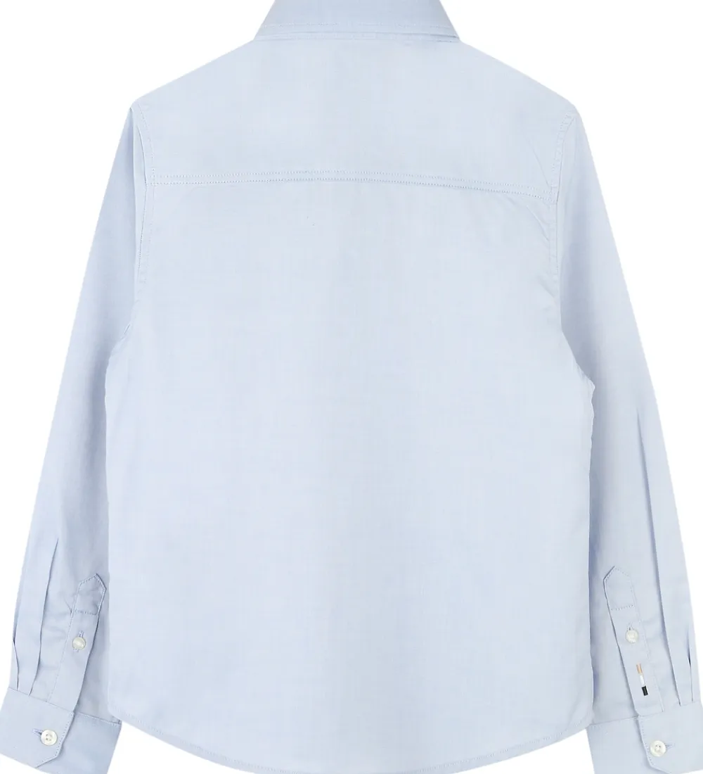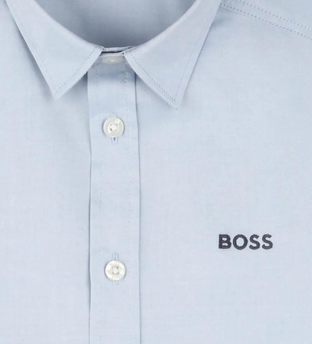 Stilren BOSS skjorte med lange ærmer i en lys blå nuance og i en fastvævet kvalitet. Skjorten har en klassisk krave og gennemgående knapper samt et diskret BOSS logo på brystet.