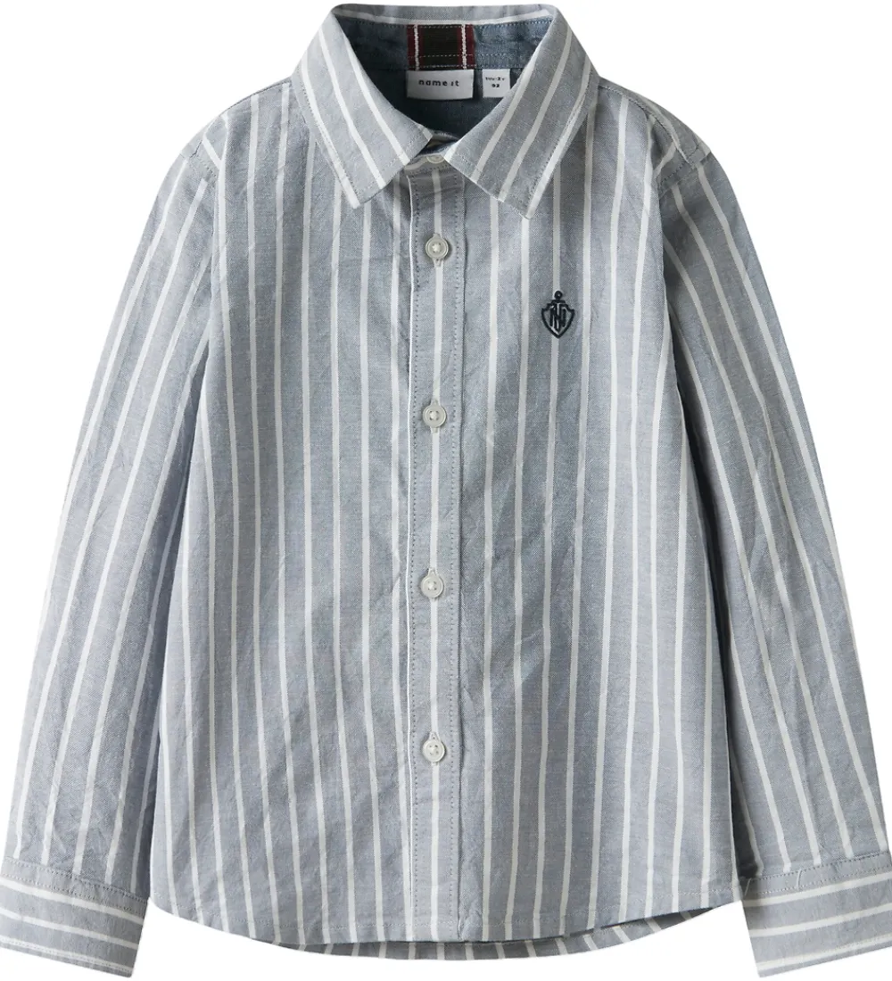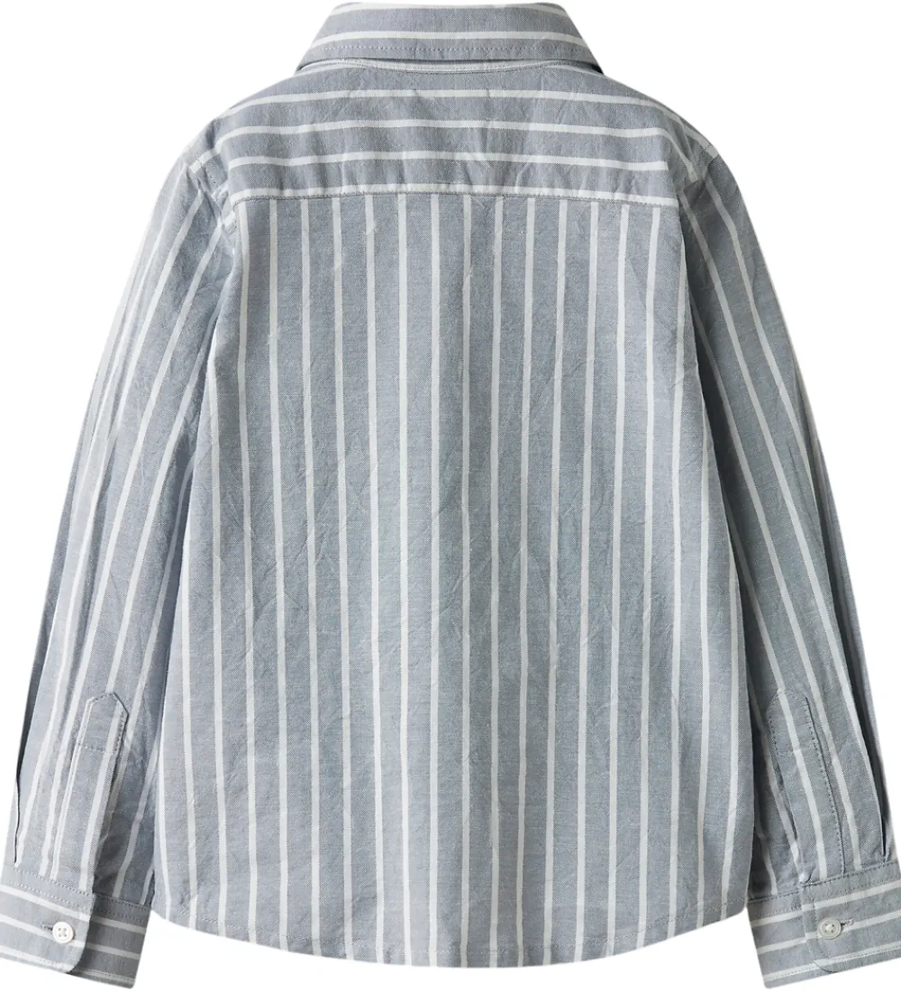 Elegant Name It skjorte med lange ærmer i en klassisk, lyseblå nuance med fine, lodrette hvide striber.
