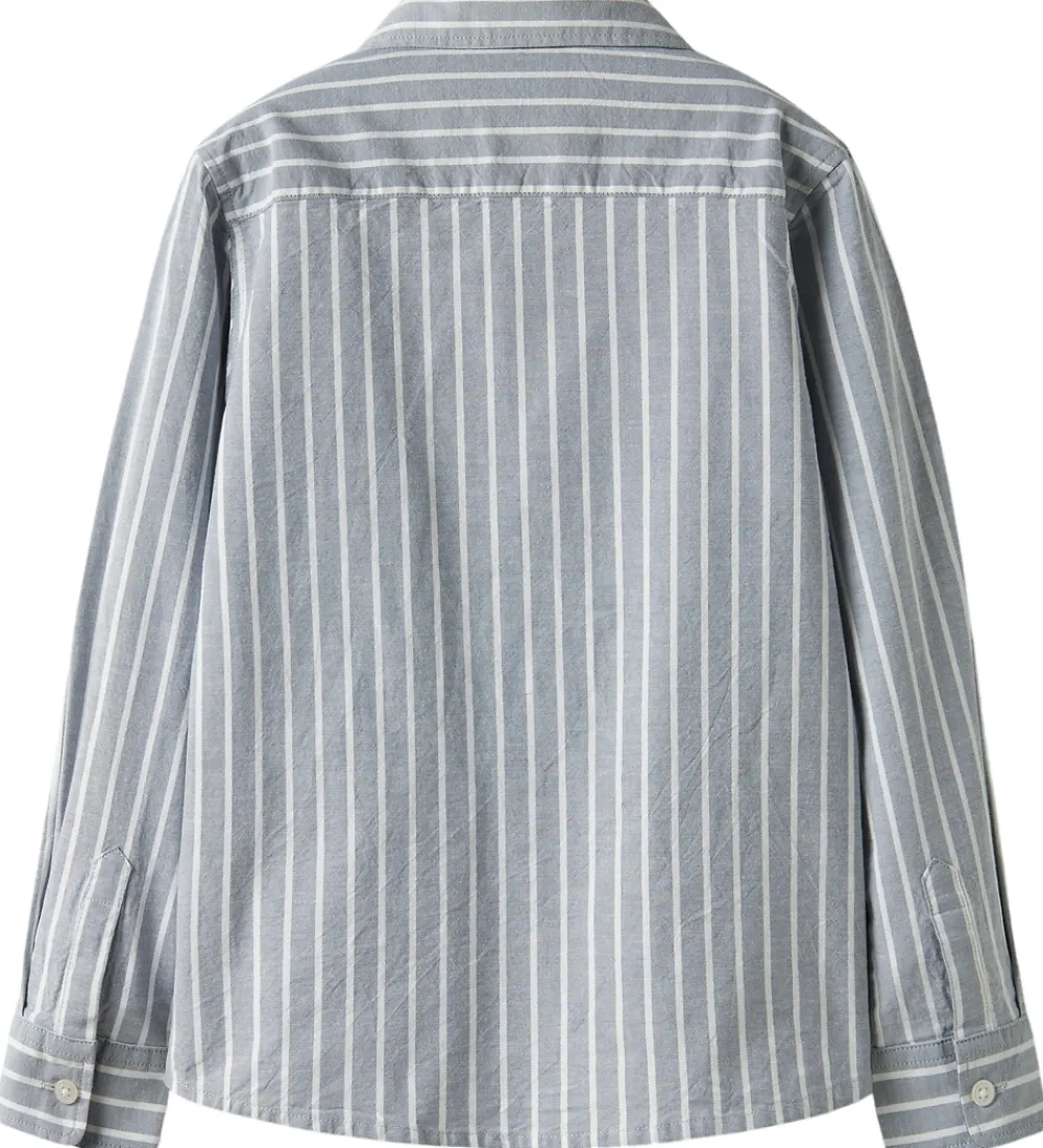 Stilfuld Name It skjorte i en gråblå nuance med klassiske hvide striber. Skjorten har lange ærmer og en traditionel krave, der giver et tidløst look. Name It skjorten er prydet med en diskret logo detalje på brystet, som tilføjer et moderne touch.