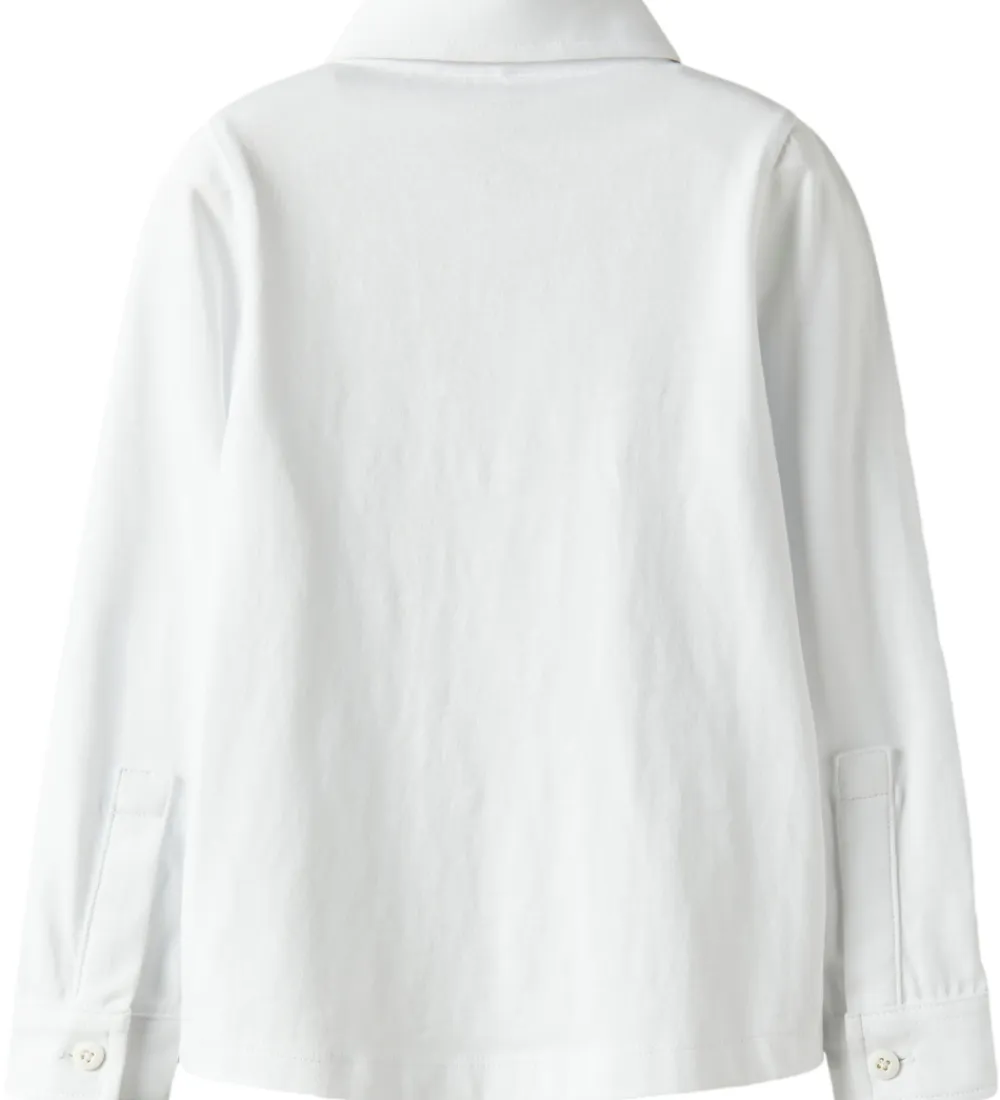 Klassisk Name It skjorte i ren hvid med lange ærmer og en enkelt brystlomme. Skjorten har en traditionel krave og lukkes med knapper foran. Name It skjorten er enkel i designet, hvilket gør den tidløs og passende til mange anledninger.