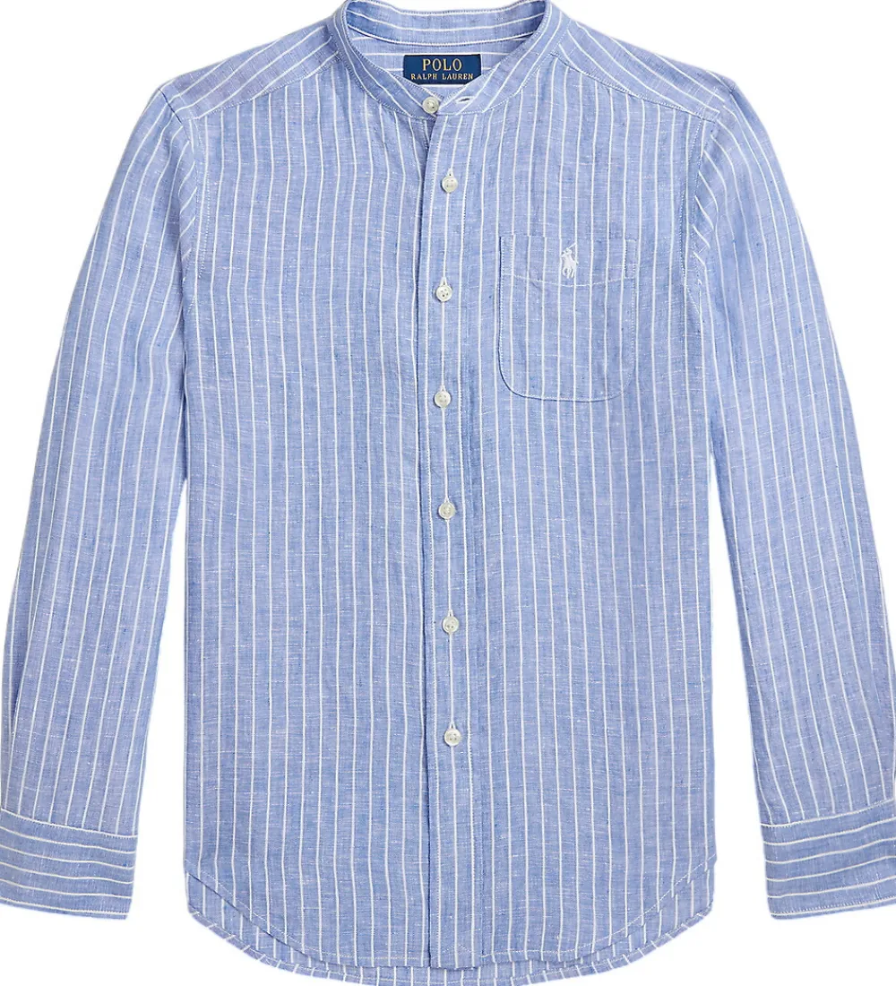 Attraktiv skjorte fra Polo Ralph Lauren med lange ærmer og et tidløst stribemønster i lyseblå nuancer. Skjorten har en rund halsudskæring og en praktisk brystlomme. Polo Ralph Laurent sikrer her en klassisk pasform med knaplukning langs fronten.
