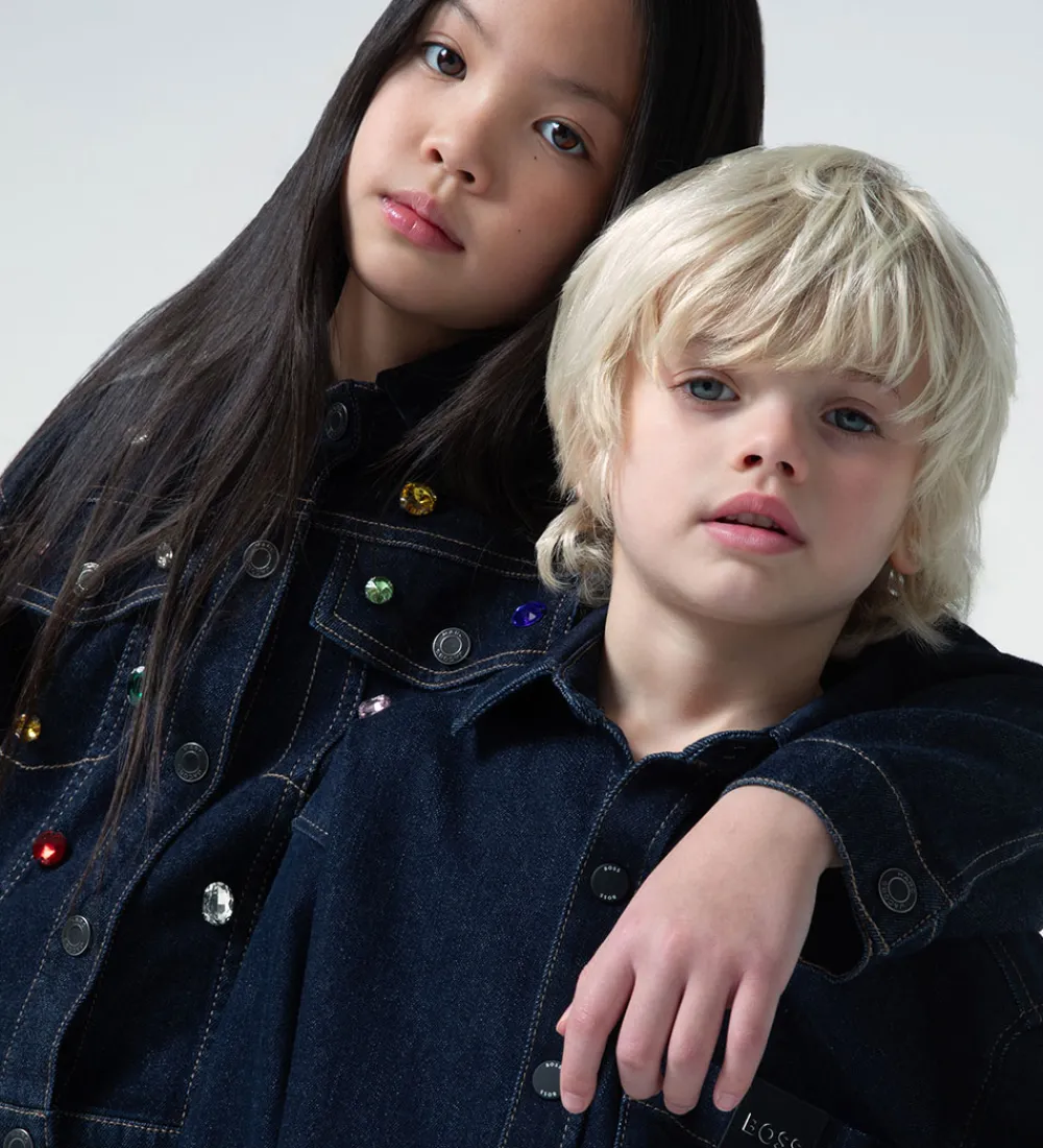 Stilfuld BOSS skjorte i navy denim i en strækbar kvalitet. BOSS skjorten har et enkelt brystlomme, og kanten af ærmerne lukkes med en sort tryknap. Skjorten lukkes med sorte trykknapper, og den har en klassiske krave. I siderne er der praktiske lommer.