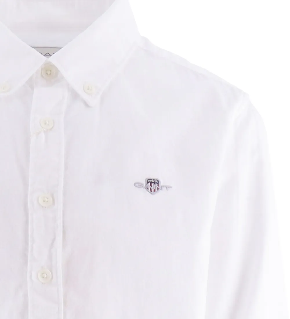 Fin GANT skjorte i ensfarvet hvid i en fastvævet kvalitet.