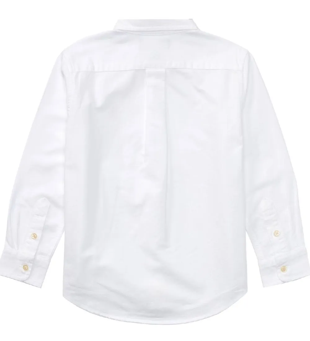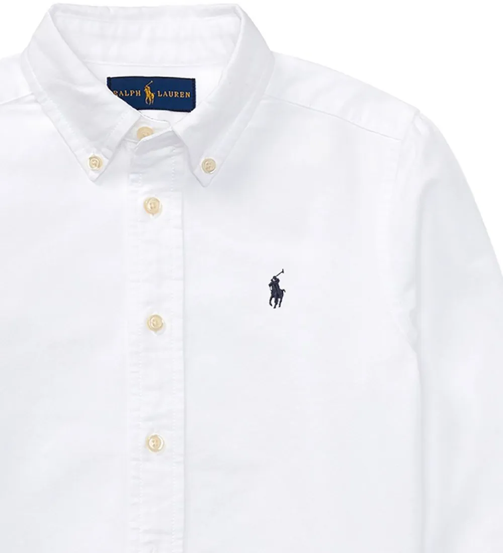 Flot Polo Ralph Lauren skjorte i hvid i en fastvævet kvalitet, og fortil i venstre side er der broderet et navy logo.