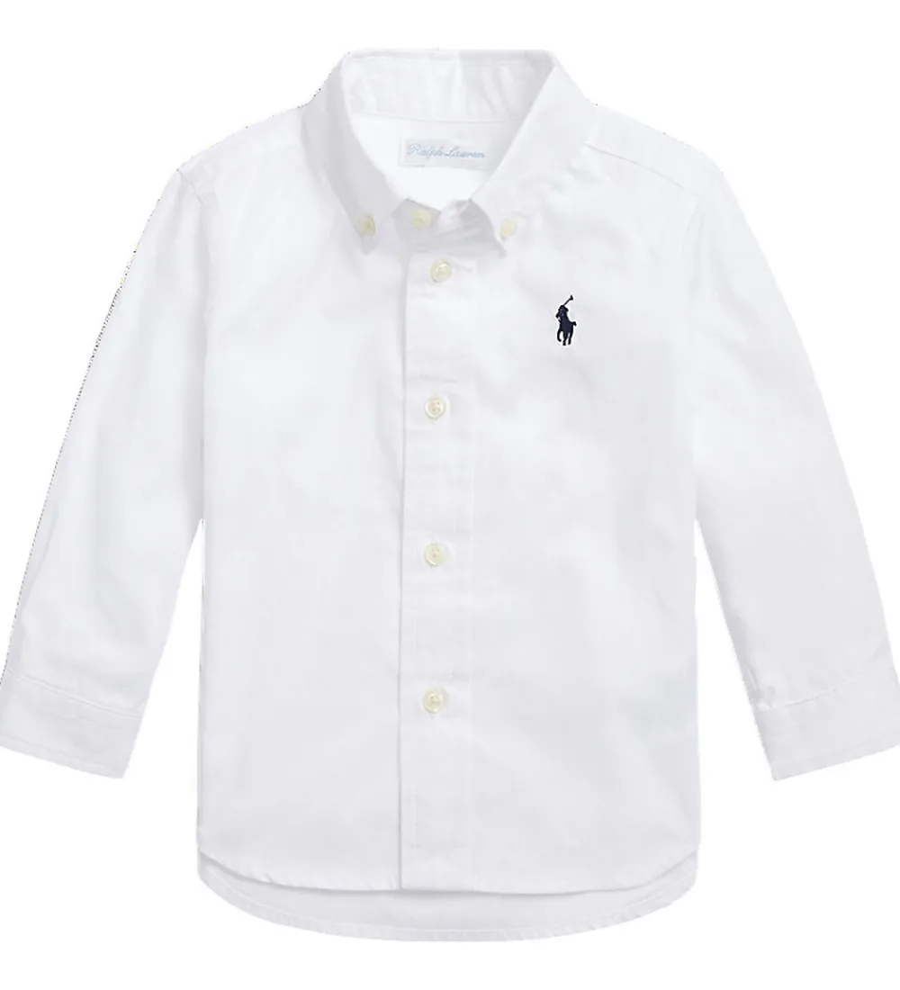 Elegant Polo Ralph Lauren skjorte i klassisk hvid farve. Skjorten har lange ærmer og en tidløs krave med knapper ned foran. Det ikoniske Polo Ralph Lauren logo er broderet på brystet, hvilket giver et sofistikeret udtryk.