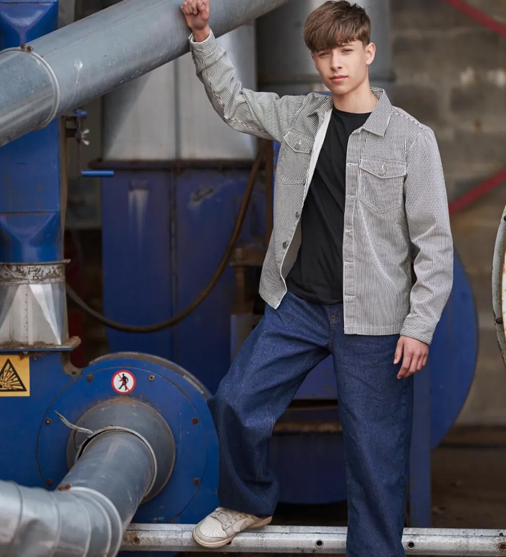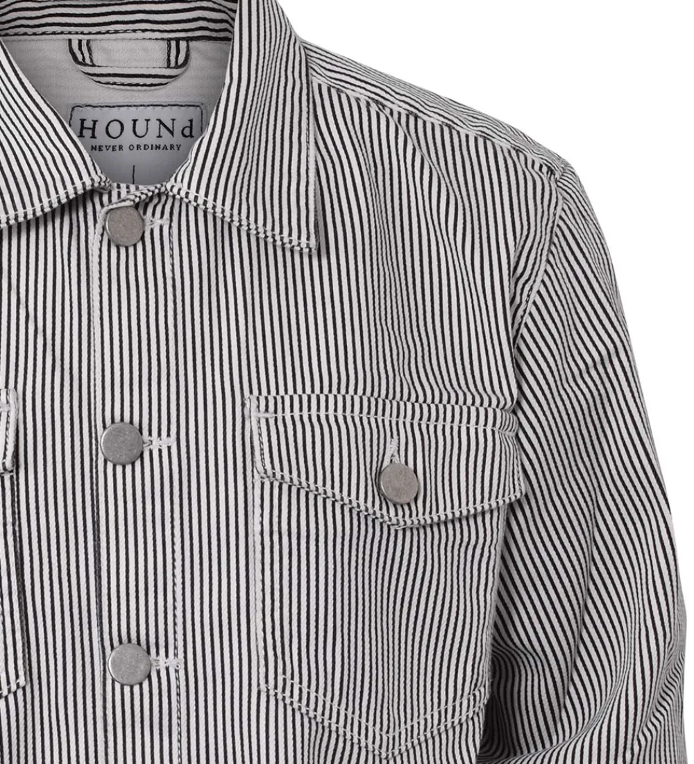 Stilren Hound skjorte med smalle striber i hvid og sort, med knapper i metal.