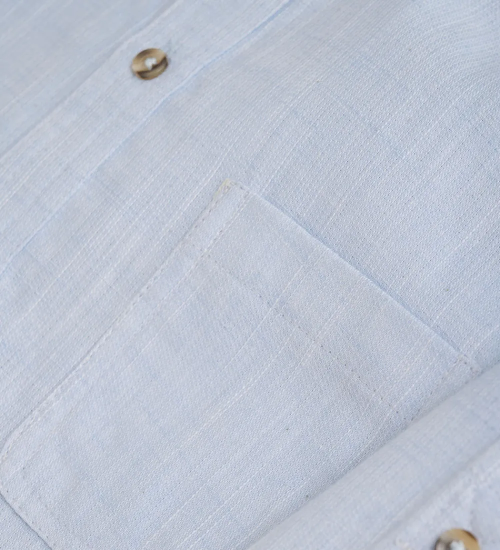 Elegant Minymo skjorte i en lys blå nuance med knaplukning og en praktisk brystlomme. Skjorten har lange ærmer, hvilket gør den ideel til forskellige anledninger. Minymo tilbyder kvalitet og stil i ét produkt.
