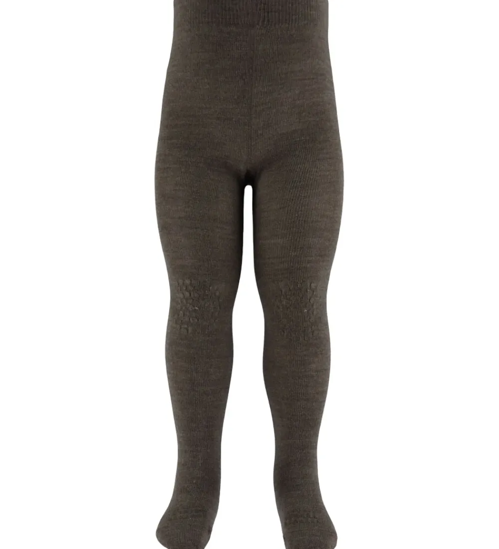 Skønne GoBabyGo skridsikre strømpebukser i meleret brun i en strikket uldkvalitet og med dutter af plastisol.