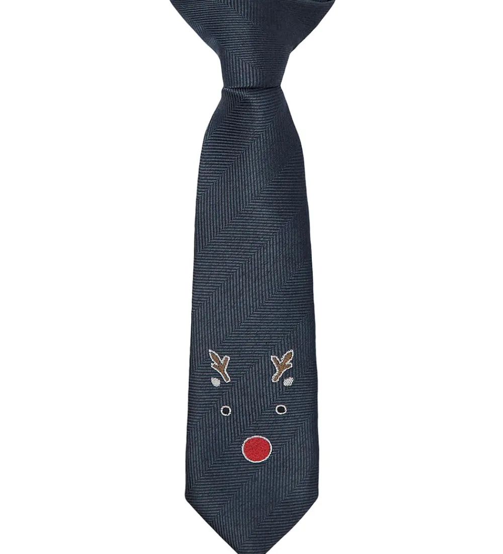 Flot Name It slips i mørkeblå satin med en vævet struktur og med motiv af Rudolph på det nederste stykke.