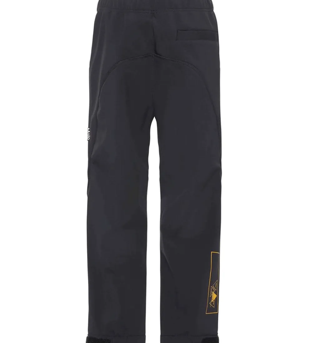 Molo softshellbukserne har elastikkanter i benåbningerne, som kan strammes yderligere ind med velcroremme. Indvendigt er de forede med blødt fleece.