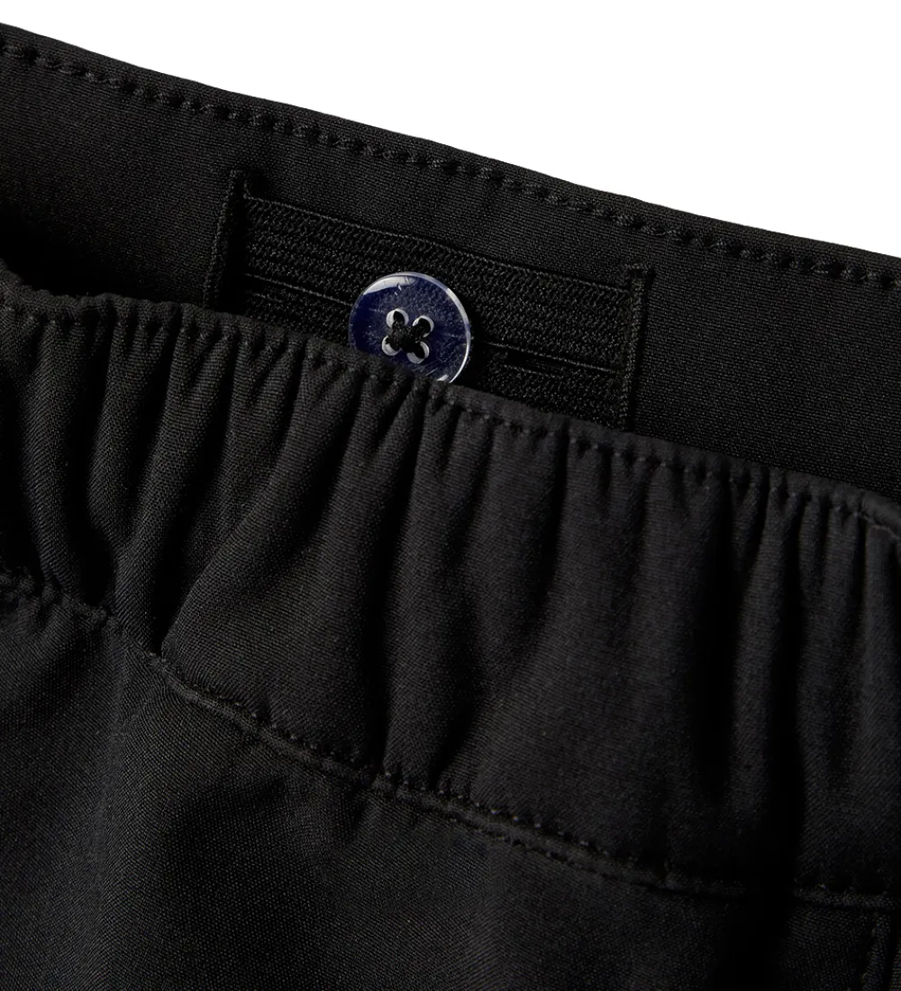 Smarte Name It softshellbukser i ensfarvet sort, med reflekser på ydersiden af begge bukseben.