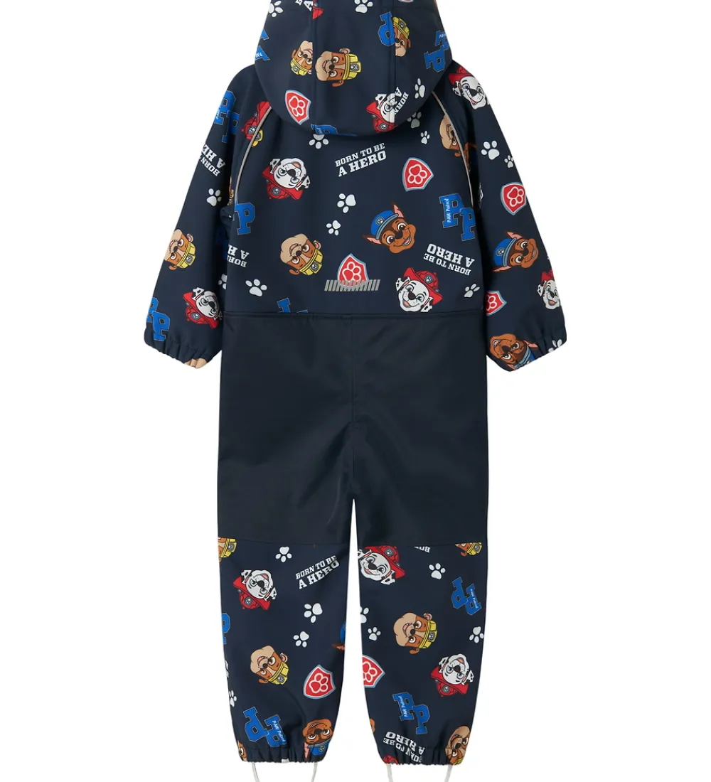 Fin Name It softshelldragt i navyblå med et farverigt allover-Paw Patrol-print.