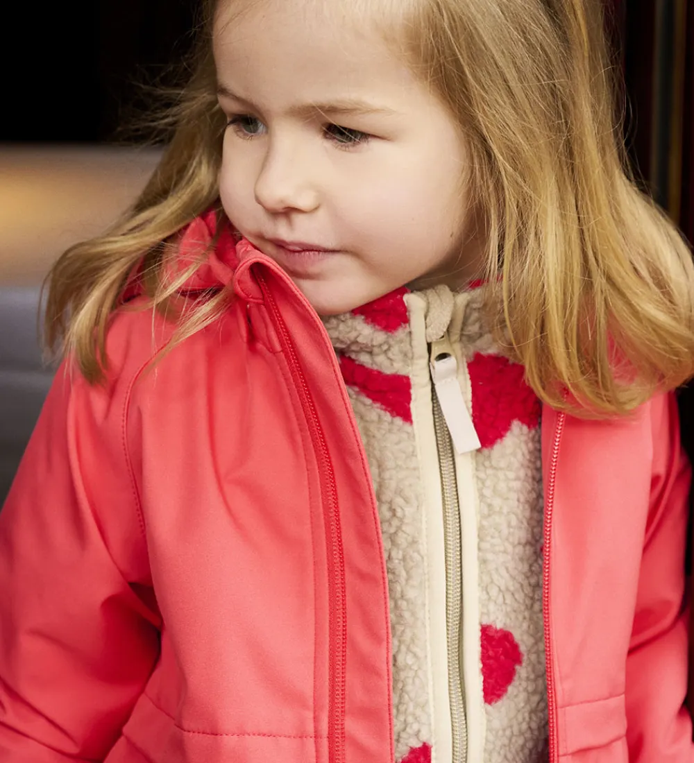 Yderst på ærmerne er der praktiske refleksstriber, og nederst på ryggen er der et refleksprint formet som en koala.