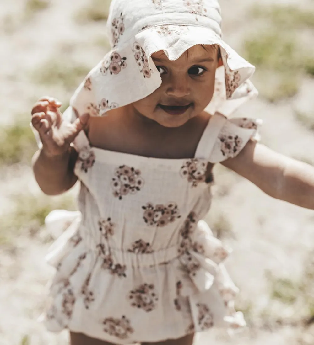 Fin That’s Mine sommerdragt i rosa et alloverblomsterprint i rosa og grønne nuancer.
