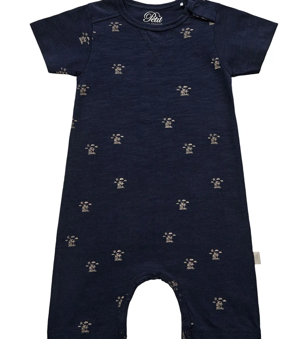 Petit by Sofie Schnoor sommerdragten har korte ærmer og ben. Sommerdragten åbnes med praktiske trykknapper på venstre skulder samt mellem benene, og den er lavet i en behagelig og strækbar kvalitet.