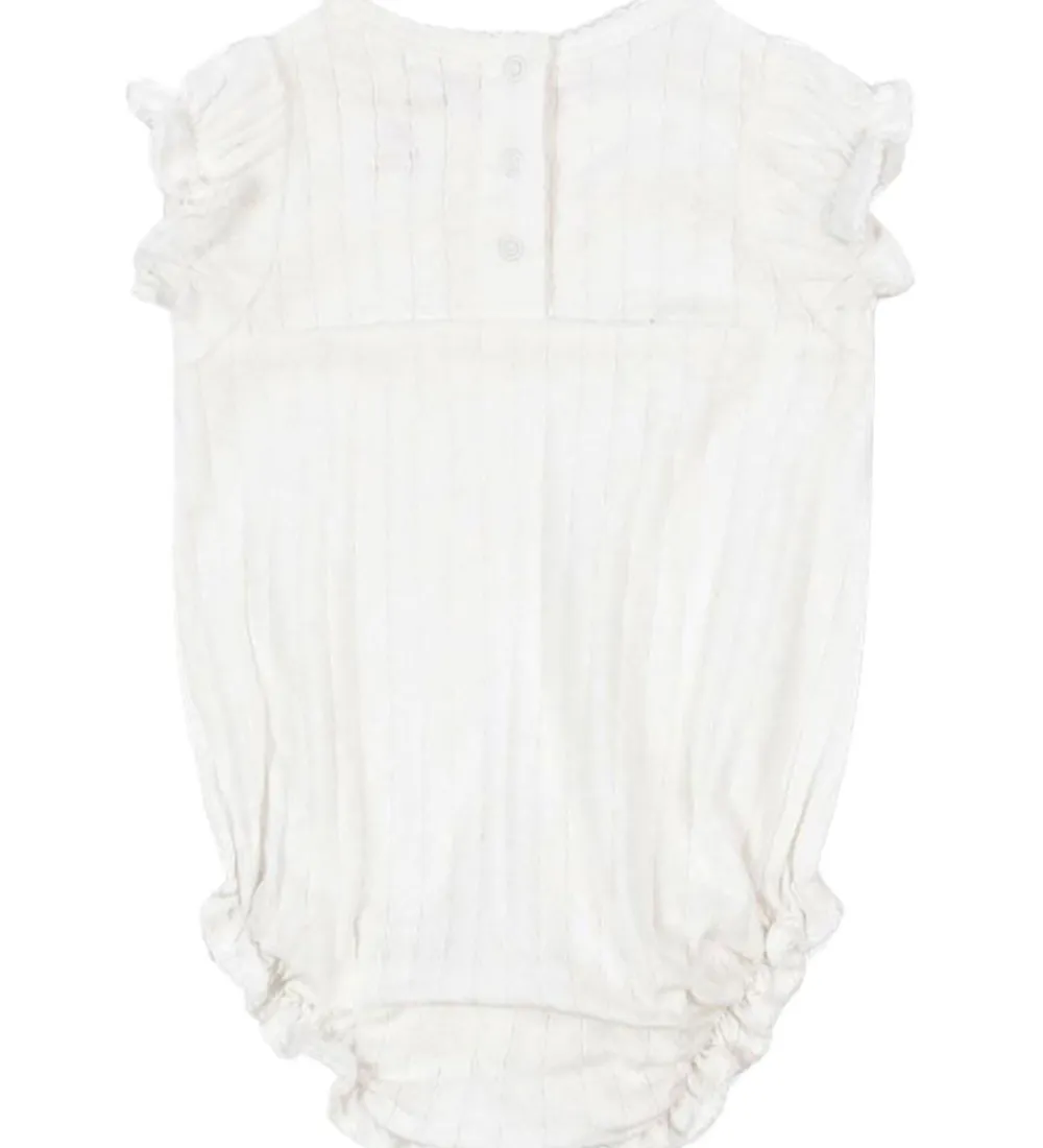 Fin Konges Sløjd sommerdragt i ensfarvet hvid med et diskret hulmønster.