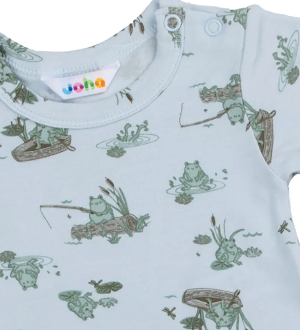 Sød Joha sommerdragt i en lys blå nuance med et sødt print af frøer.