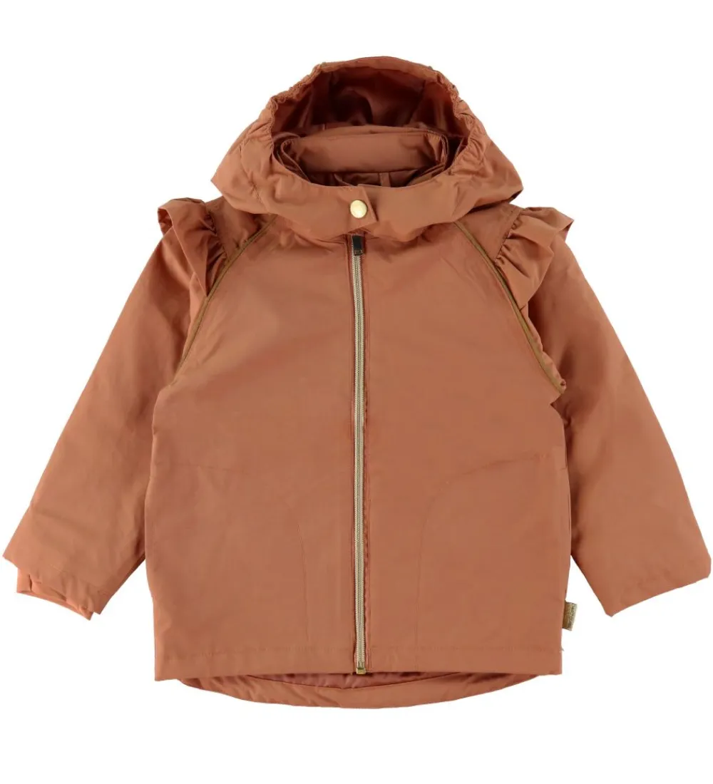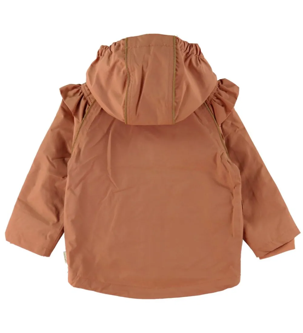 Fin Hust and Claire sommerjakke i en lys, brun nuance med omkring skuldrene og på hætten.