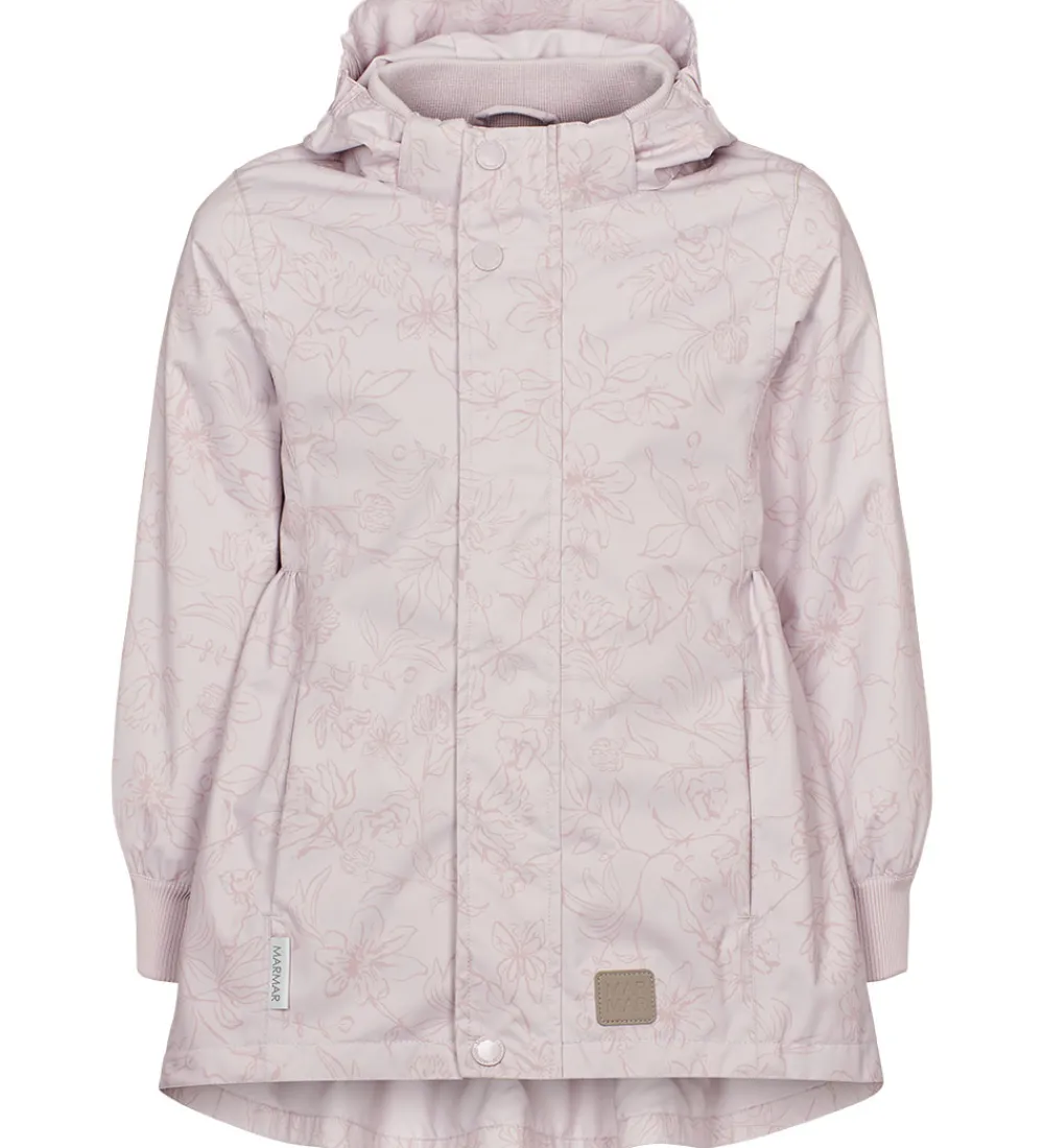MarMar sommerjakken har et figursyet snit med ekstra vidde i bunden og søde rynkedetaljer bagpå. Den har en aftagelig hætte, som sidder fast med skjulte trykknapper. Ærmerne har brede ribkanter.