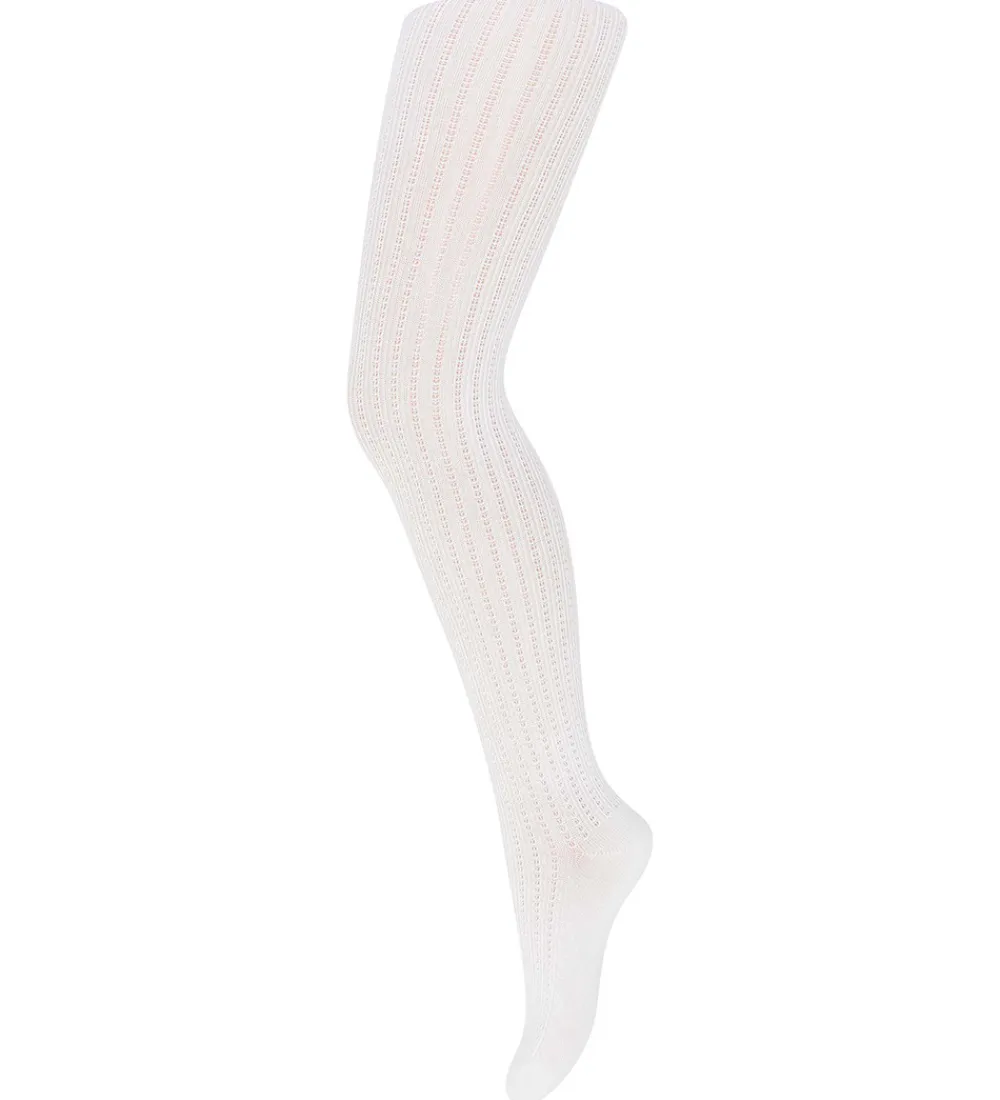 Dejlige MP strømpebukser i ensfarvet hvid, med et flot hulmønster. I taljen er der en smal blondekant.