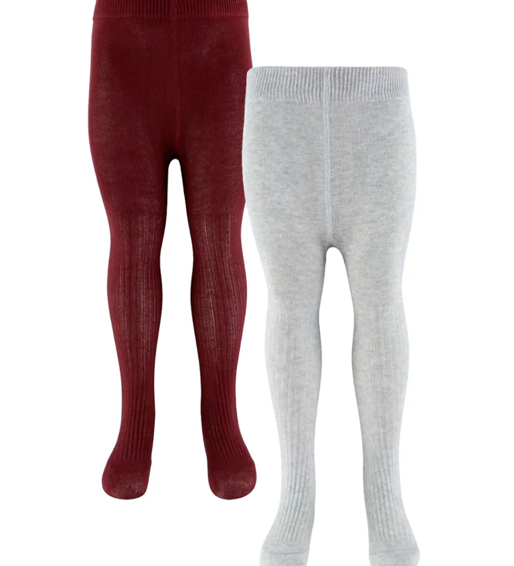 Praktiske Konges Sløjd strømpebukser i en 2-pak med en ensfarvet rød og en gråmeleret variant. Strømpebukserne har elastik i livet for en god pasform.