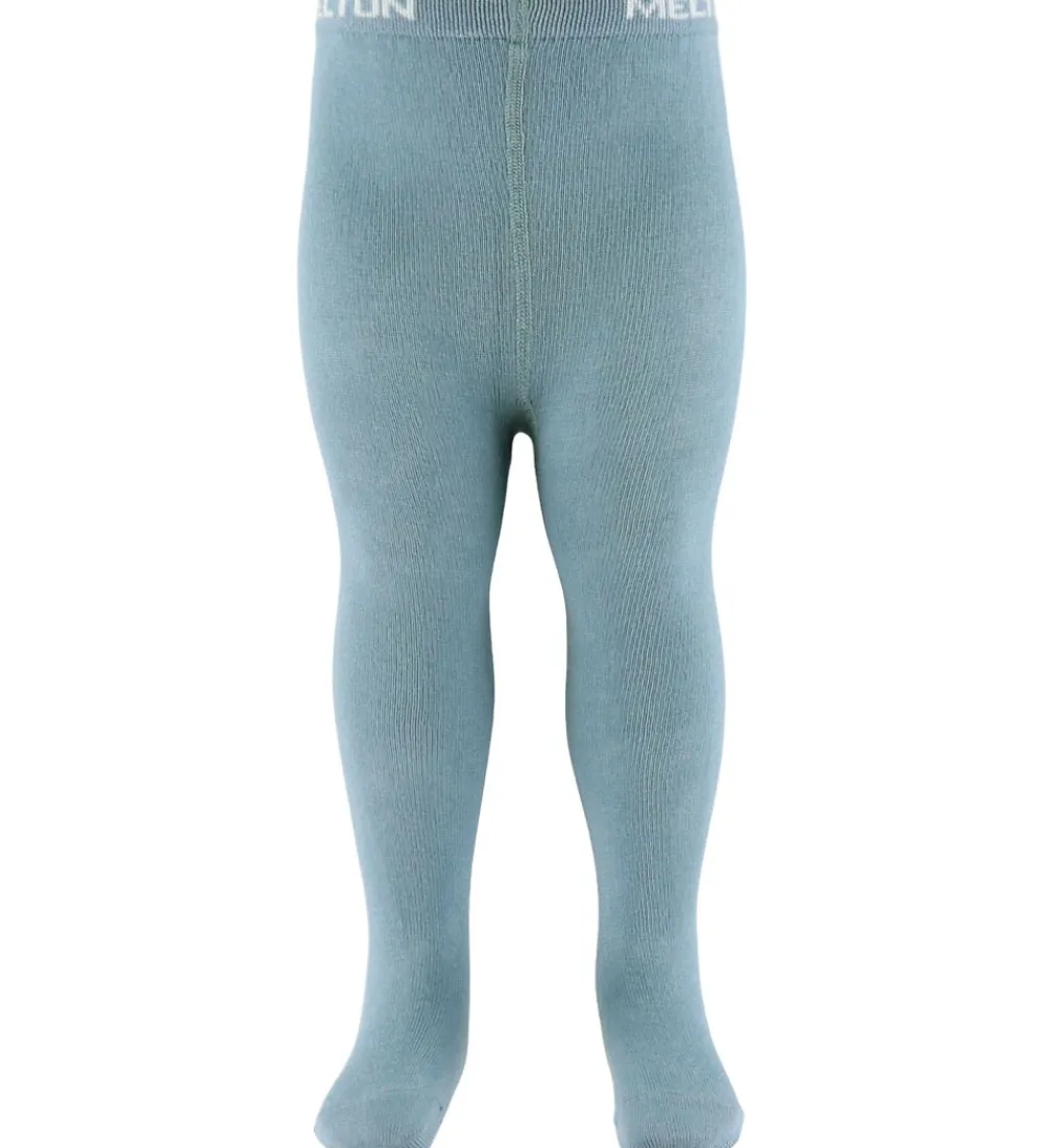 Fine Melton strømpebukser i ensfarvet støvet blå.