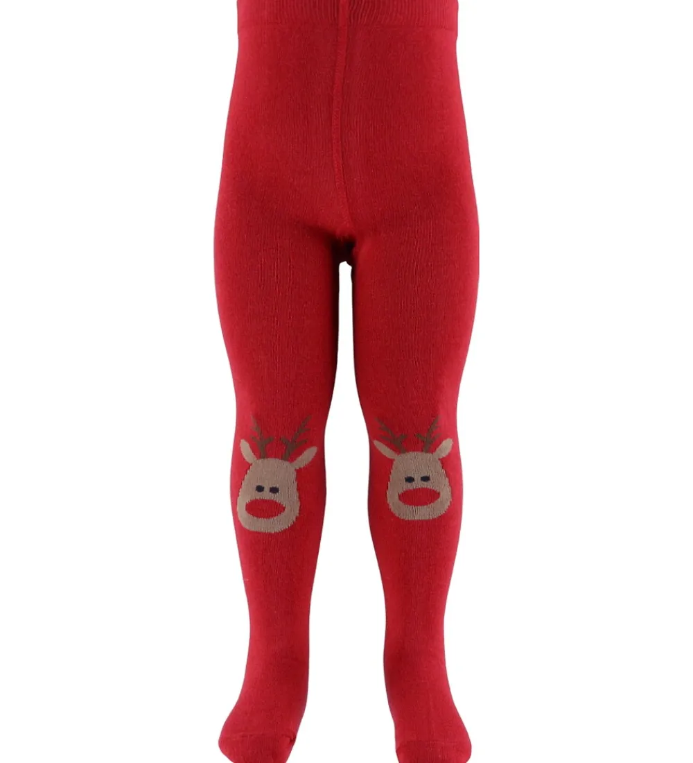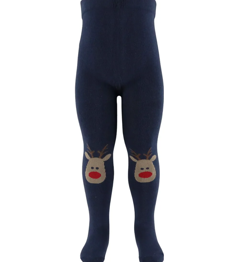 Farverige Name It strømpebukser i en klassisk mørk blå og rød nuance. Strømpebukserne har et sjovt print med et rensdyransigt.