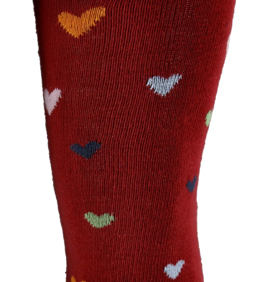 Smukke Melton strømpebukser i en dyb rød farve med et mønster af små, farverige hjerter. Strømpebukserne har en behagelig pasform med elastik i livet, hvilket sikrer en god pasform. Melton strømpebukserne kombinerer stil og funktionalitet i et tidløst design.