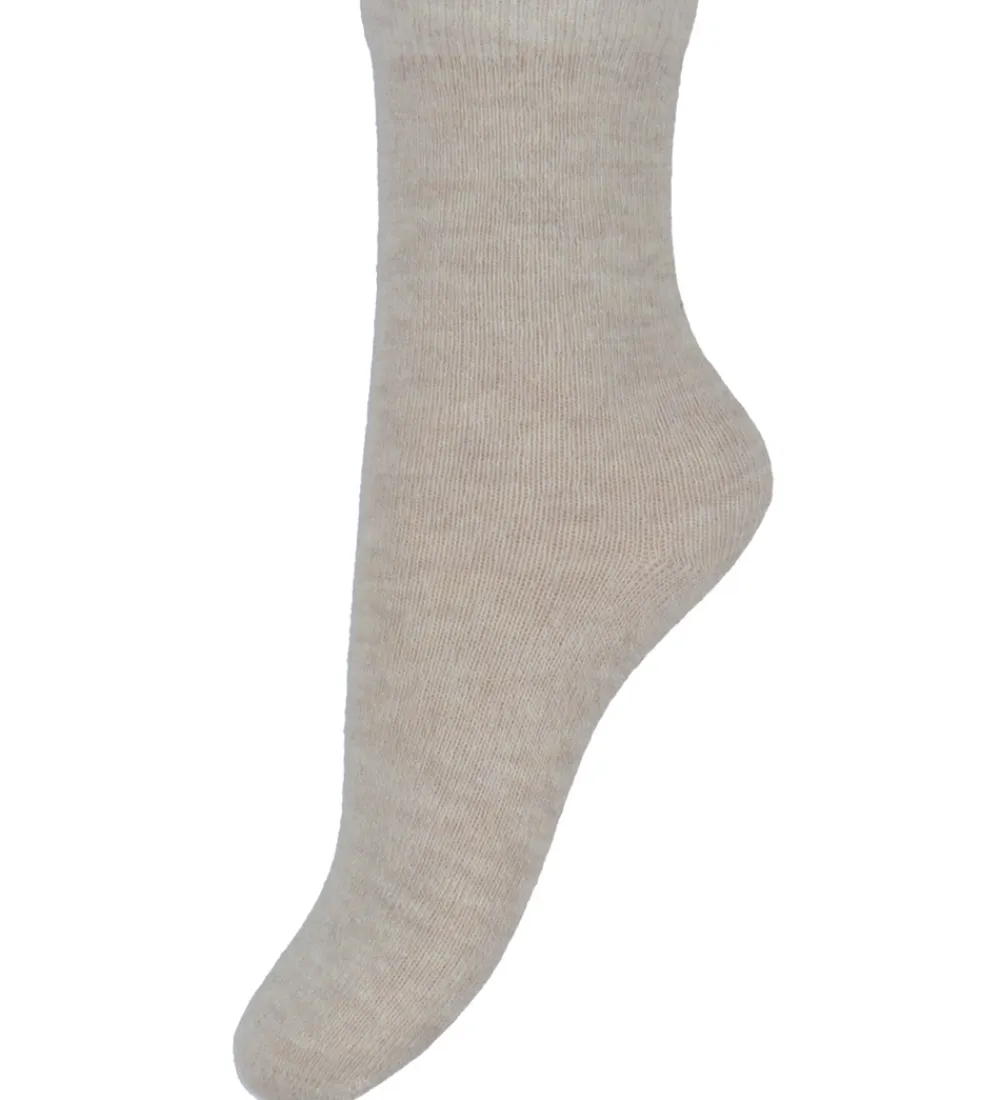 Praktiske Minymo strømper solgt i en 5-pak i meleret beige. Minymo strømperne har et langt skaft og en smal elastikkant øverst, der sikrer en god pasform.