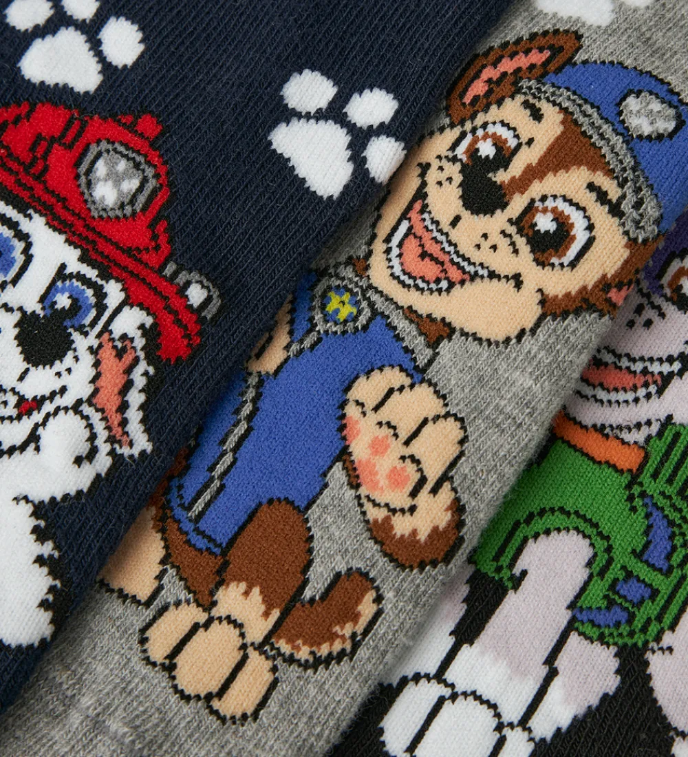 Charmerende Name It strømper solgt i en 3-pak med motiver fra den populære Paw Patrol tegneserie. Strømperne kommer i hhv. navyblå, sort og grå med forskellige motiver. Strømperne har en behagelig ribkant øverst.